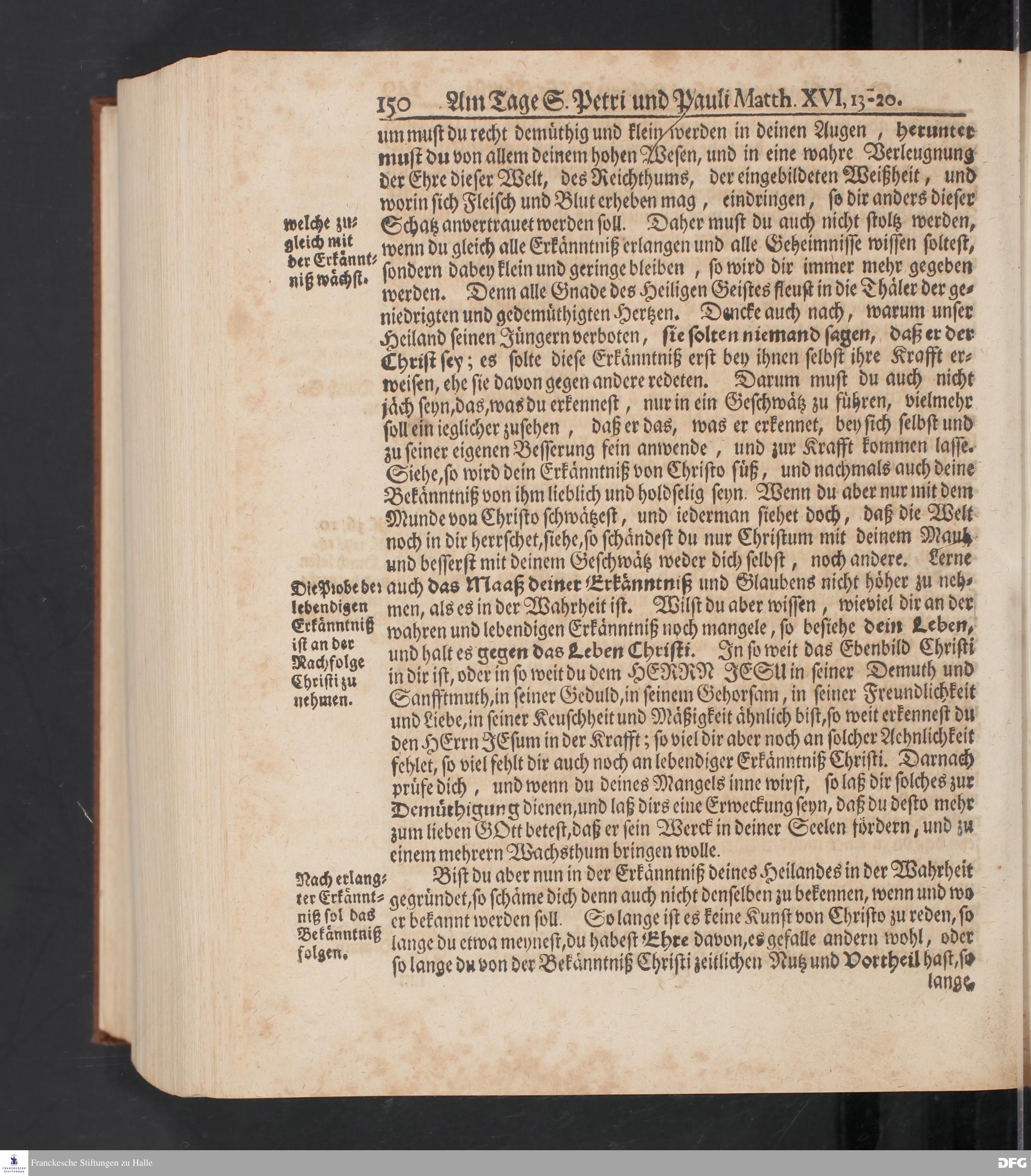 August Hermann Franckens S.Theol.Prof.und Past. Sonn= Fest= und Apostel=Tags=-Predigten / Darinnen Die zum wahren Christenthum gehörige nöthigste und vornehmste Materien abgehandelt sind; Nunmehro von neuen wieder durchgesehen / und mit einigen Predigten vermehret / Nebst den darzu nützlichen Registern. Die vierte EDITION. HALLE / gedruckt und verlegt im Wäysen=Hause / MDCCXV. Mit Königl.Preuß.und Churfl.Brandenb.Privil.