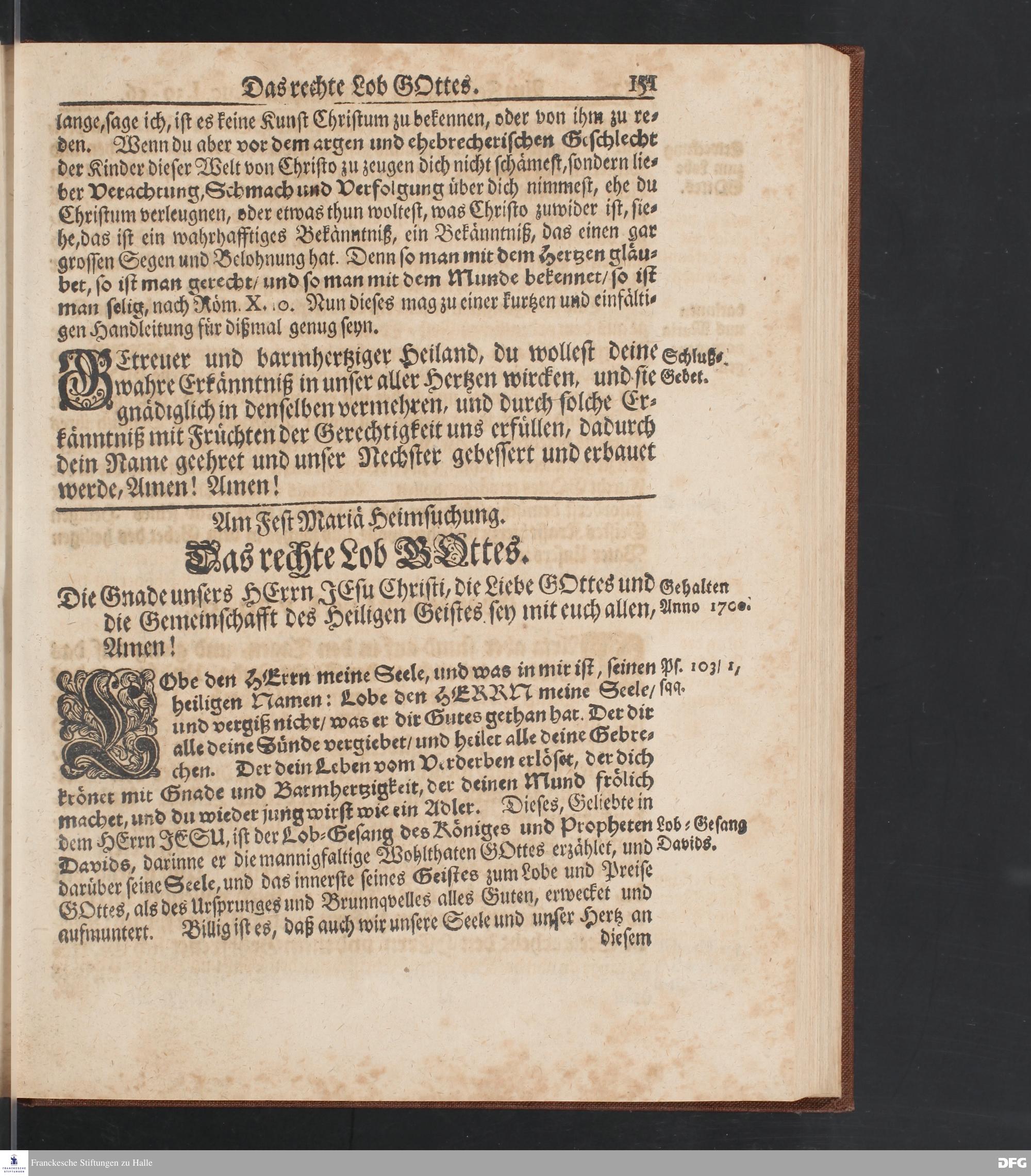 August Hermann Franckens S.Theol.Prof.und Past. Sonn= Fest= und Apostel=Tags=-Predigten / Darinnen Die zum wahren Christenthum gehörige nöthigste und vornehmste Materien abgehandelt sind; Nunmehro von neuen wieder durchgesehen / und mit einigen Predigten vermehret / Nebst den darzu nützlichen Registern. Die vierte EDITION. HALLE / gedruckt und verlegt im Wäysen=Hause / MDCCXV. Mit Königl.Preuß.und Churfl.Brandenb.Privil.