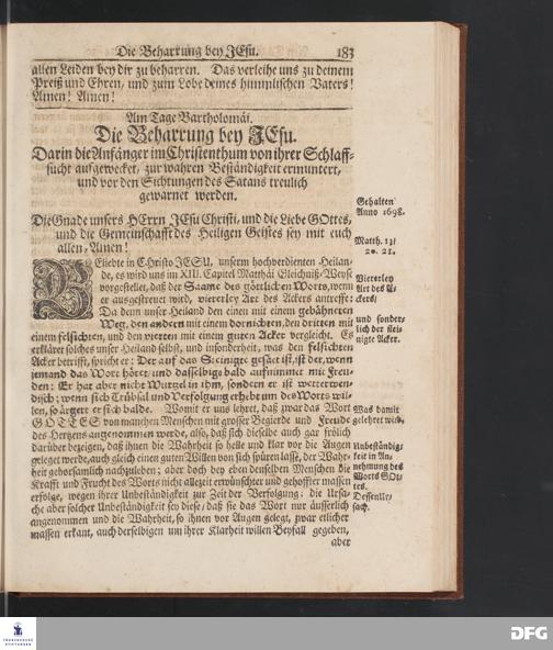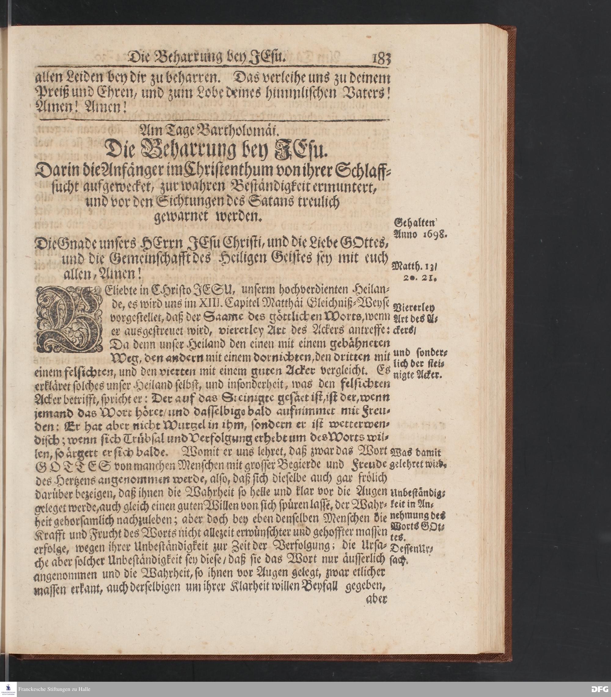 August Hermann Franckens S.Theol.Prof.und Past. Sonn= Fest= und Apostel=Tags=-Predigten / Darinnen Die zum wahren Christenthum gehörige nöthigste und vornehmste Materien abgehandelt sind; Nunmehro von neuen wieder durchgesehen / und mit einigen Predigten vermehret / Nebst den darzu nützlichen Registern. Die vierte EDITION. HALLE / gedruckt und verlegt im Wäysen=Hause / MDCCXV. Mit Königl.Preuß.und Churfl.Brandenb.Privil.