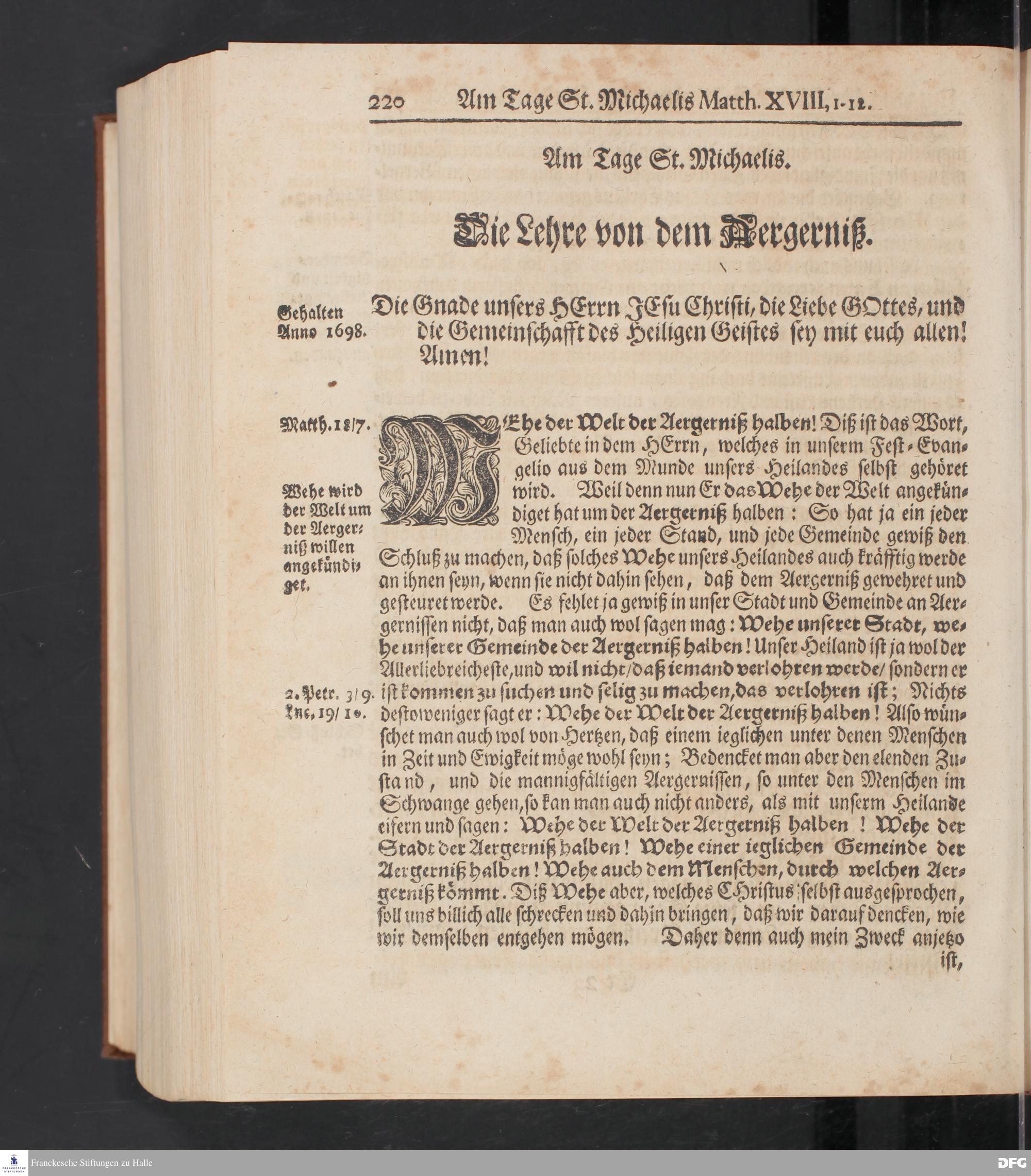 August Hermann Franckens S.Theol.Prof.und Past. Sonn= Fest= und Apostel=Tags=-Predigten / Darinnen Die zum wahren Christenthum gehörige nöthigste und vornehmste Materien abgehandelt sind; Nunmehro von neuen wieder durchgesehen / und mit einigen Predigten vermehret / Nebst den darzu nützlichen Registern. Die vierte EDITION. HALLE / gedruckt und verlegt im Wäysen=Hause / MDCCXV. Mit Königl.Preuß.und Churfl.Brandenb.Privil.