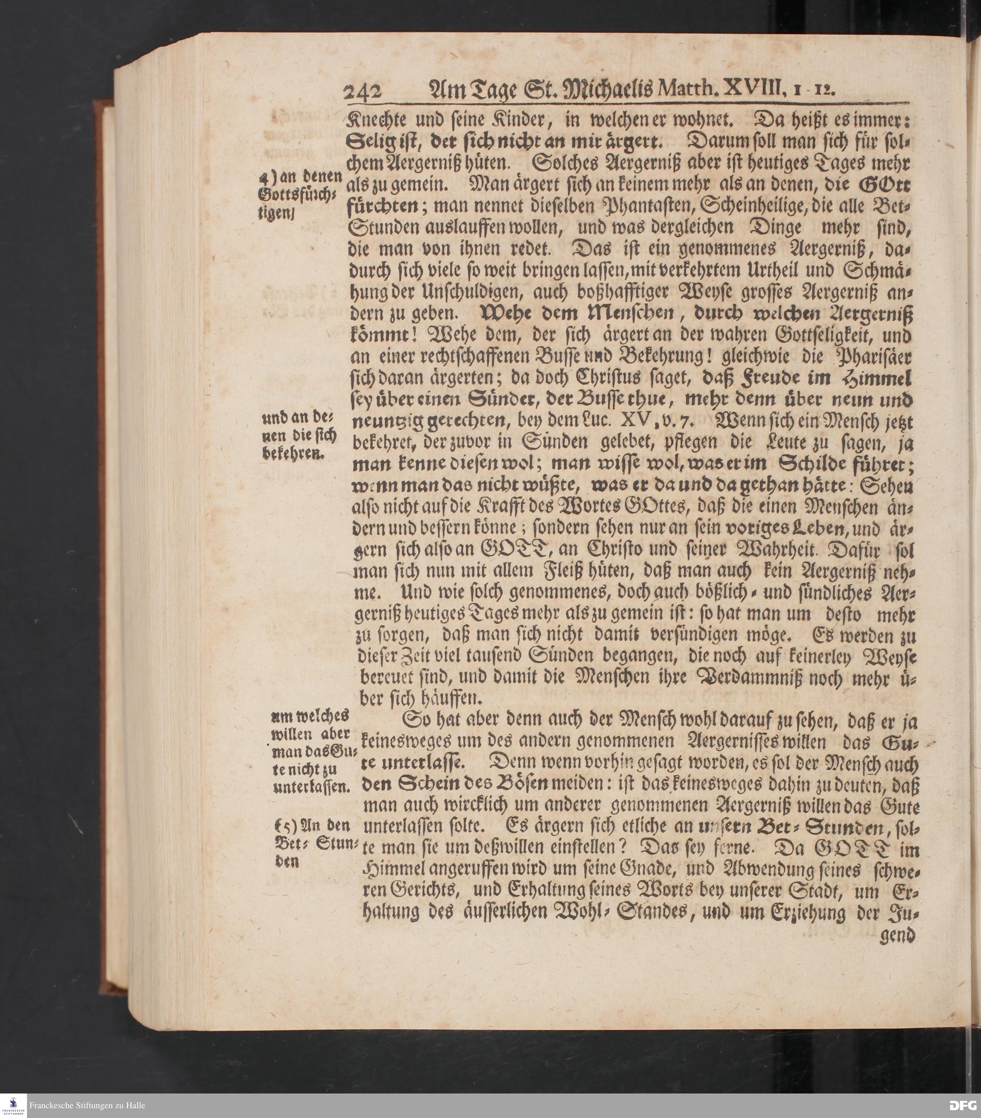 August Hermann Franckens S.Theol.Prof.und Past. Sonn= Fest= und Apostel=Tags=-Predigten / Darinnen Die zum wahren Christenthum gehörige nöthigste und vornehmste Materien abgehandelt sind; Nunmehro von neuen wieder durchgesehen / und mit einigen Predigten vermehret / Nebst den darzu nützlichen Registern. Die vierte EDITION. HALLE / gedruckt und verlegt im Wäysen=Hause / MDCCXV. Mit Königl.Preuß.und Churfl.Brandenb.Privil.