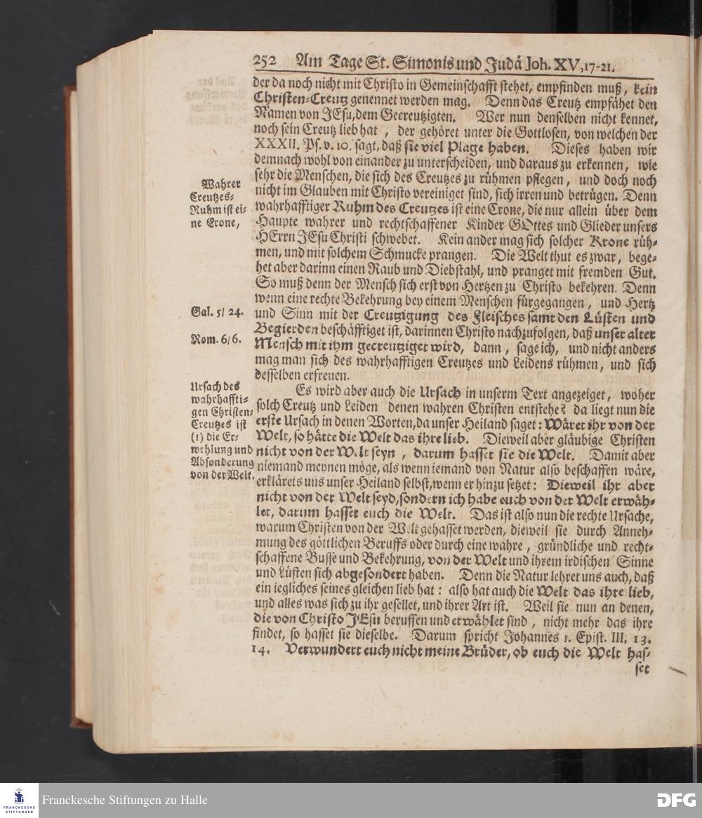 August Hermann Franckens S.Theol.Prof.und Past. Sonn= Fest= und Apostel=Tags=-Predigten / Darinnen Die zum wahren Christenthum gehörige nöthigste und vornehmste Materien abgehandelt sind; Nunmehro von neuen wieder durchgesehen / und mit einigen Predigten vermehret / Nebst den darzu nützlichen Registern. Die vierte EDITION. HALLE / gedruckt und verlegt im Wäysen=Hause / MDCCXV. Mit Königl.Preuß.und Churfl.Brandenb.Privil.