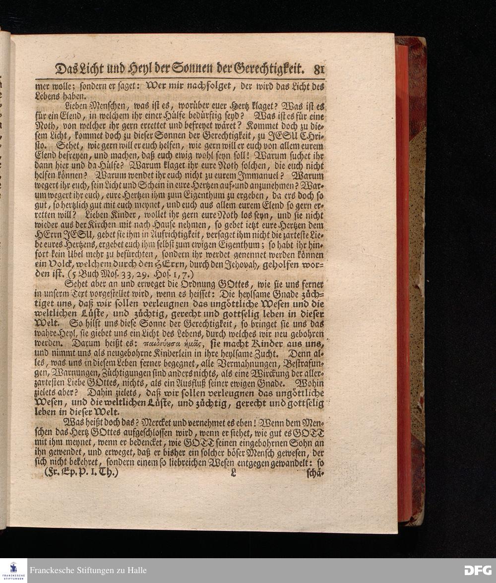 August Hermann Franckens, S.Theol.Prof.Past.Ulric.& Scholarchæ Predigten über die Sonn= und Fest=Tags=Episteln / Nebst einer Vorrede vom erbaulichen predigen, und von dem rechten Gebrauch dieser Predigten, auch Mit nöthigen Registern versehen. Die dritte EDITION. HALLE, in Verlegung des Wäysen=Hauses, MDCCXXXXI.