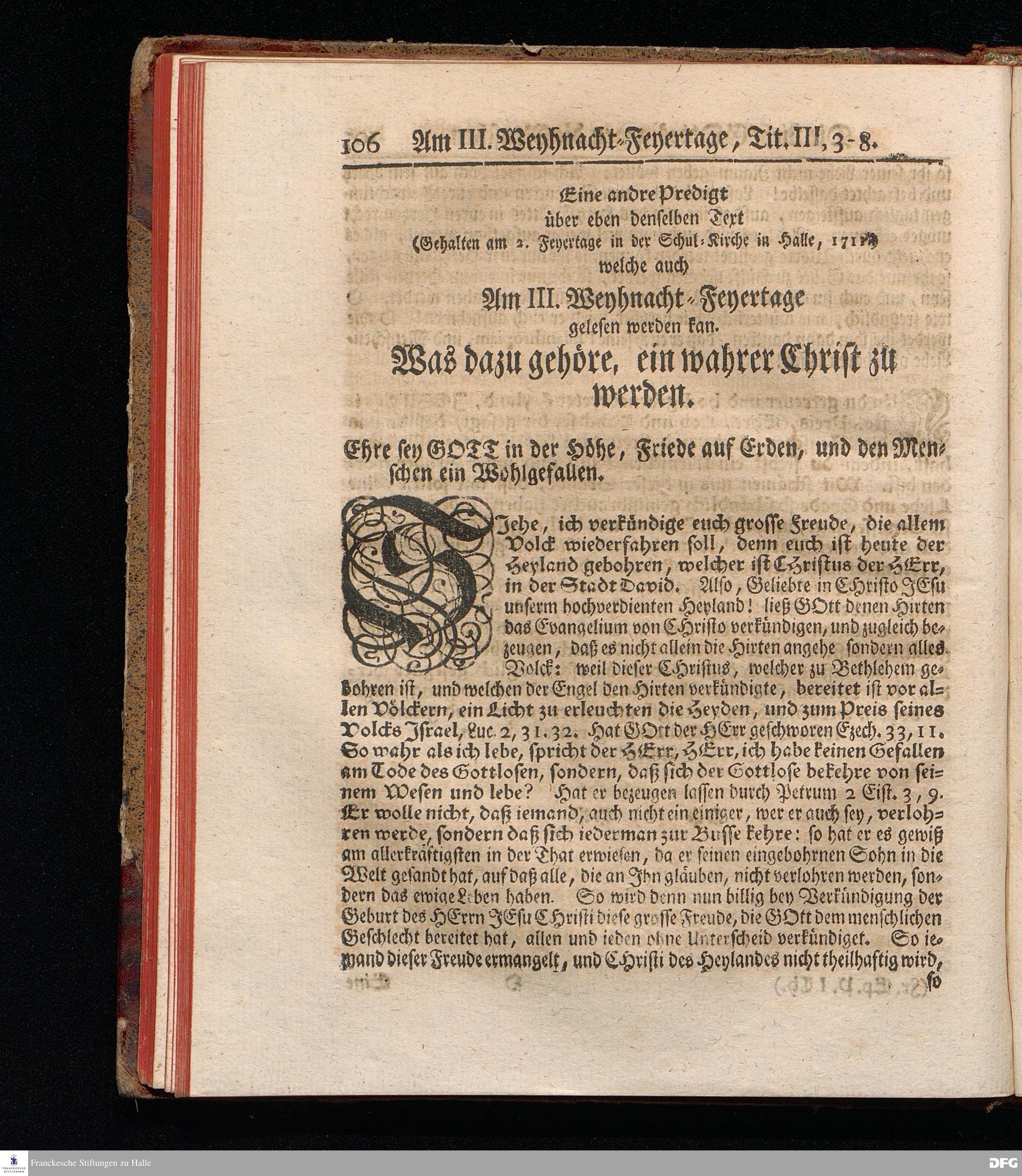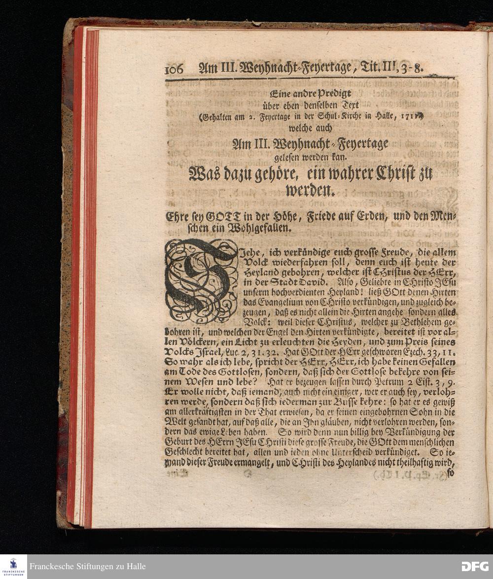 August Hermann Franckens, S.Theol.Prof.Past.Ulric.& Scholarchæ Predigten über die Sonn= und Fest=Tags=Episteln / Nebst einer Vorrede vom erbaulichen predigen, und von dem rechten Gebrauch dieser Predigten, auch Mit nöthigen Registern versehen. Die dritte EDITION. HALLE, in Verlegung des Wäysen=Hauses, MDCCXXXXI.