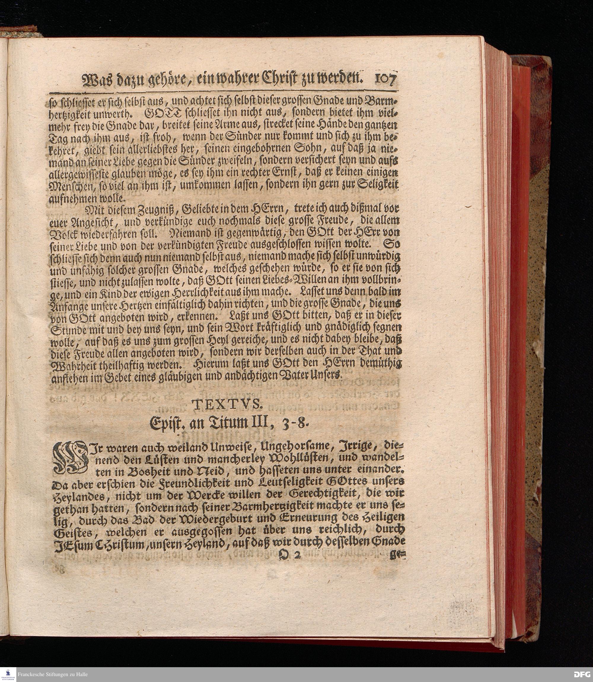 August Hermann Franckens, S.Theol.Prof.Past.Ulric.& Scholarchæ Predigten über die Sonn= und Fest=Tags=Episteln / Nebst einer Vorrede vom erbaulichen predigen, und von dem rechten Gebrauch dieser Predigten, auch Mit nöthigen Registern versehen. Die dritte EDITION. HALLE, in Verlegung des Wäysen=Hauses, MDCCXXXXI.
