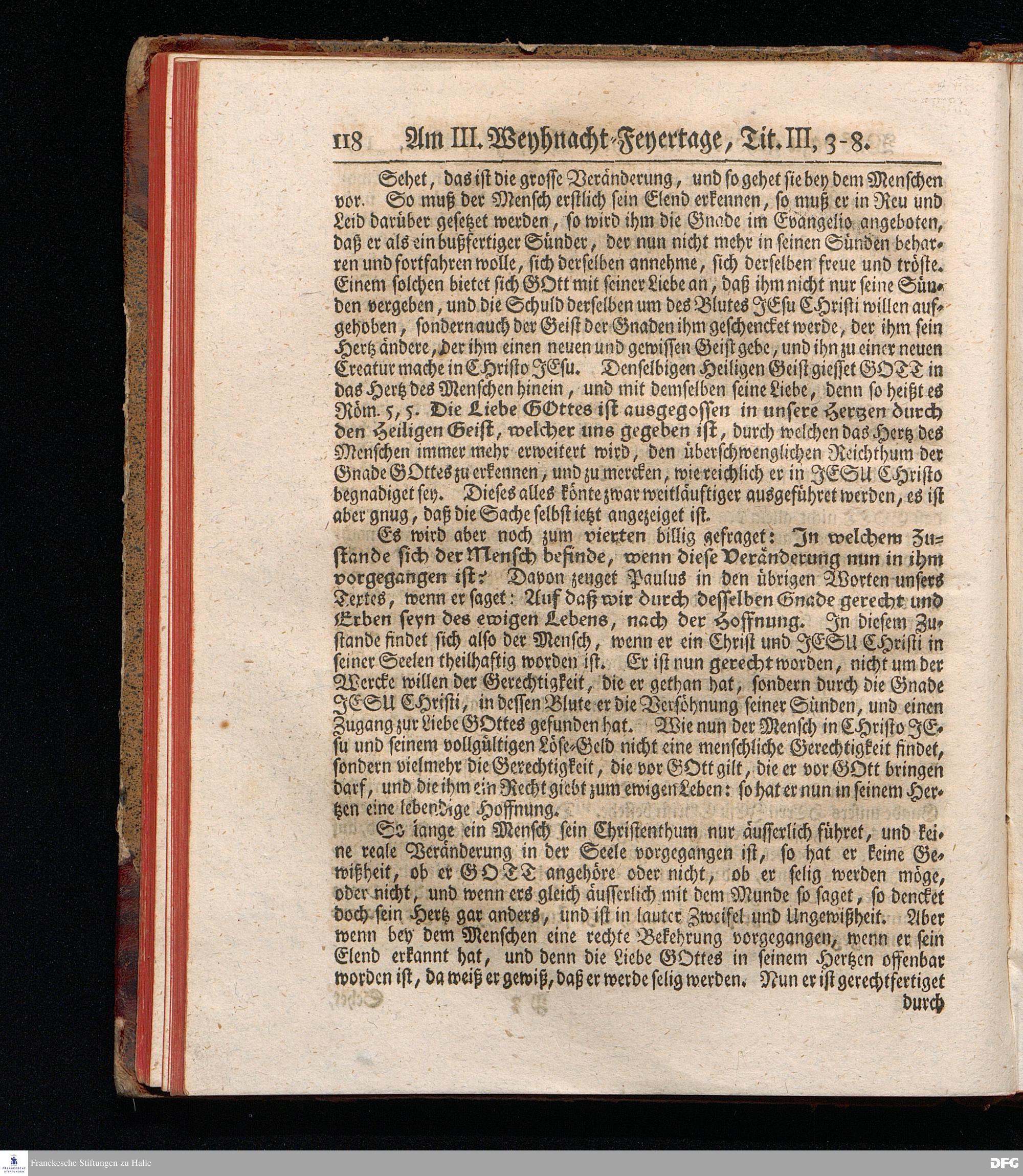 August Hermann Franckens, S.Theol.Prof.Past.Ulric.& Scholarchæ Predigten über die Sonn= und Fest=Tags=Episteln / Nebst einer Vorrede vom erbaulichen predigen, und von dem rechten Gebrauch dieser Predigten, auch Mit nöthigen Registern versehen. Die dritte EDITION. HALLE, in Verlegung des Wäysen=Hauses, MDCCXXXXI.