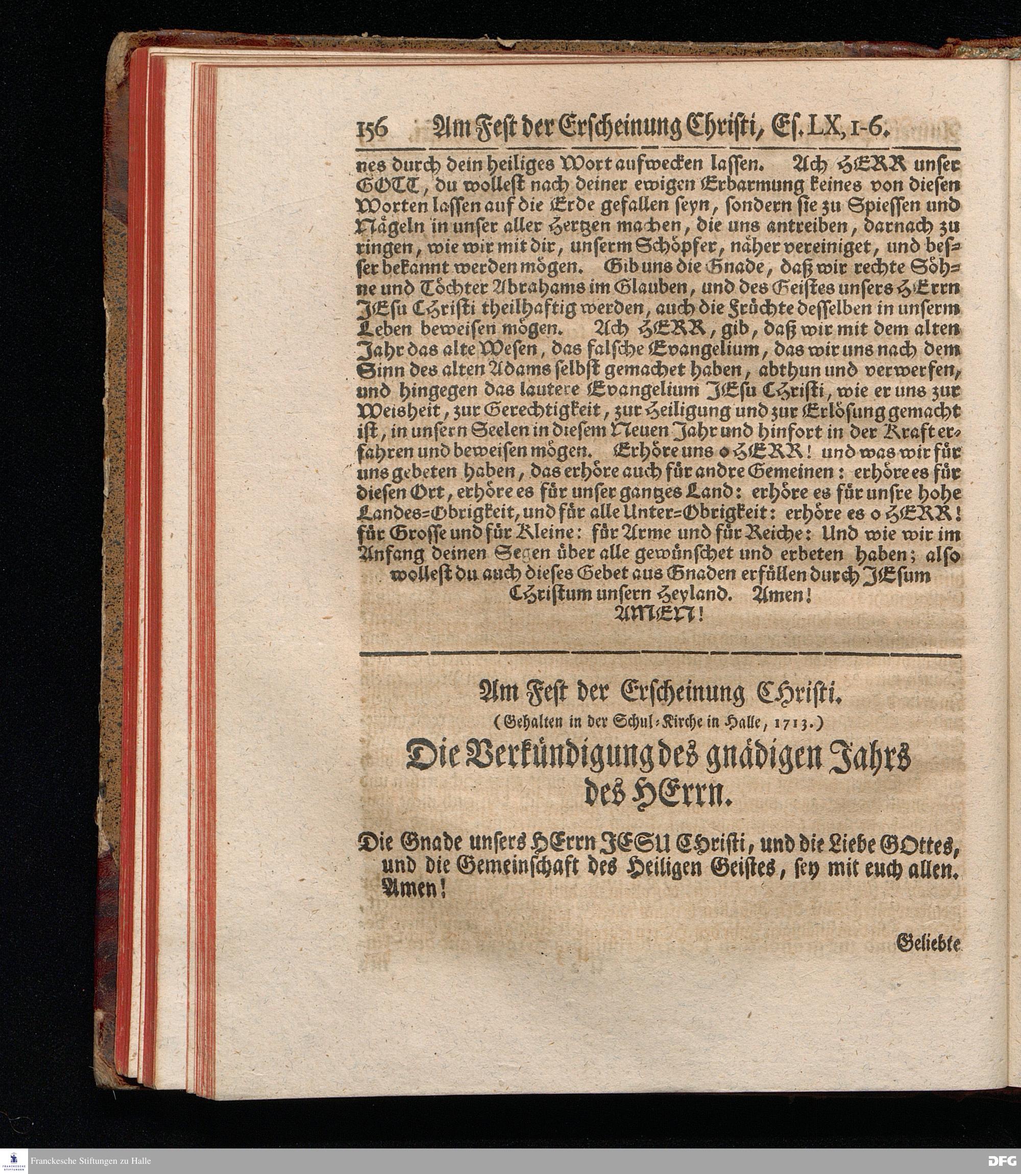 August Hermann Franckens, S.Theol.Prof.Past.Ulric.& Scholarchæ Predigten über die Sonn= und Fest=Tags=Episteln / Nebst einer Vorrede vom erbaulichen predigen, und von dem rechten Gebrauch dieser Predigten, auch Mit nöthigen Registern versehen. Die dritte EDITION. HALLE, in Verlegung des Wäysen=Hauses, MDCCXXXXI.