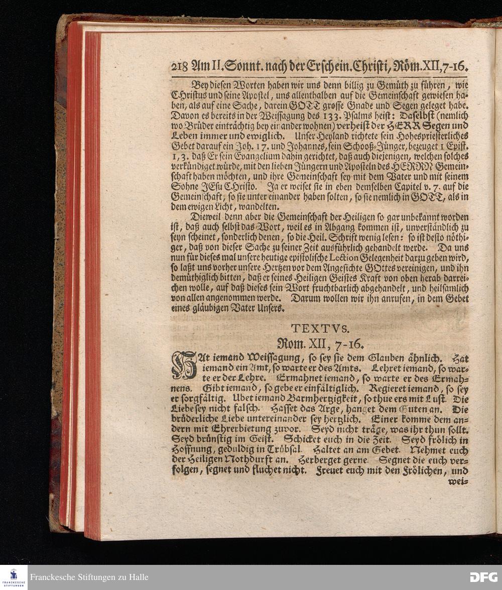 August Hermann Franckens, S.Theol.Prof.Past.Ulric.& Scholarchæ Predigten über die Sonn= und Fest=Tags=Episteln / Nebst einer Vorrede vom erbaulichen predigen, und von dem rechten Gebrauch dieser Predigten, auch Mit nöthigen Registern versehen. Die dritte EDITION. HALLE, in Verlegung des Wäysen=Hauses, MDCCXXXXI.