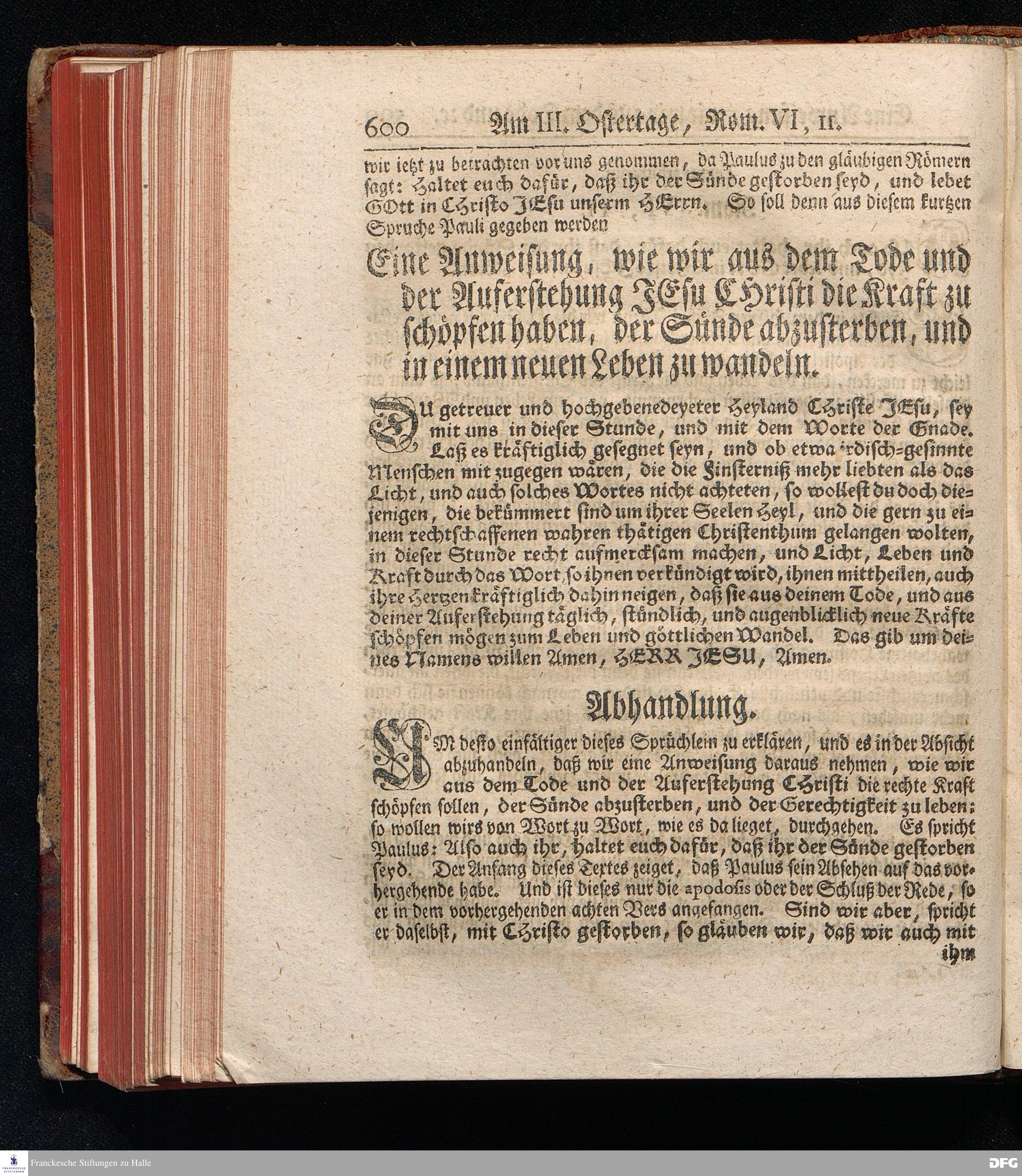 August Hermann Franckens, S.Theol.Prof.Past.Ulric.& Scholarchæ Predigten über die Sonn= und Fest=Tags=Episteln / Nebst einer Vorrede vom erbaulichen predigen, und von dem rechten Gebrauch dieser Predigten, auch Mit nöthigen Registern versehen. Die dritte EDITION. HALLE, in Verlegung des Wäysen=Hauses, MDCCXXXXI.