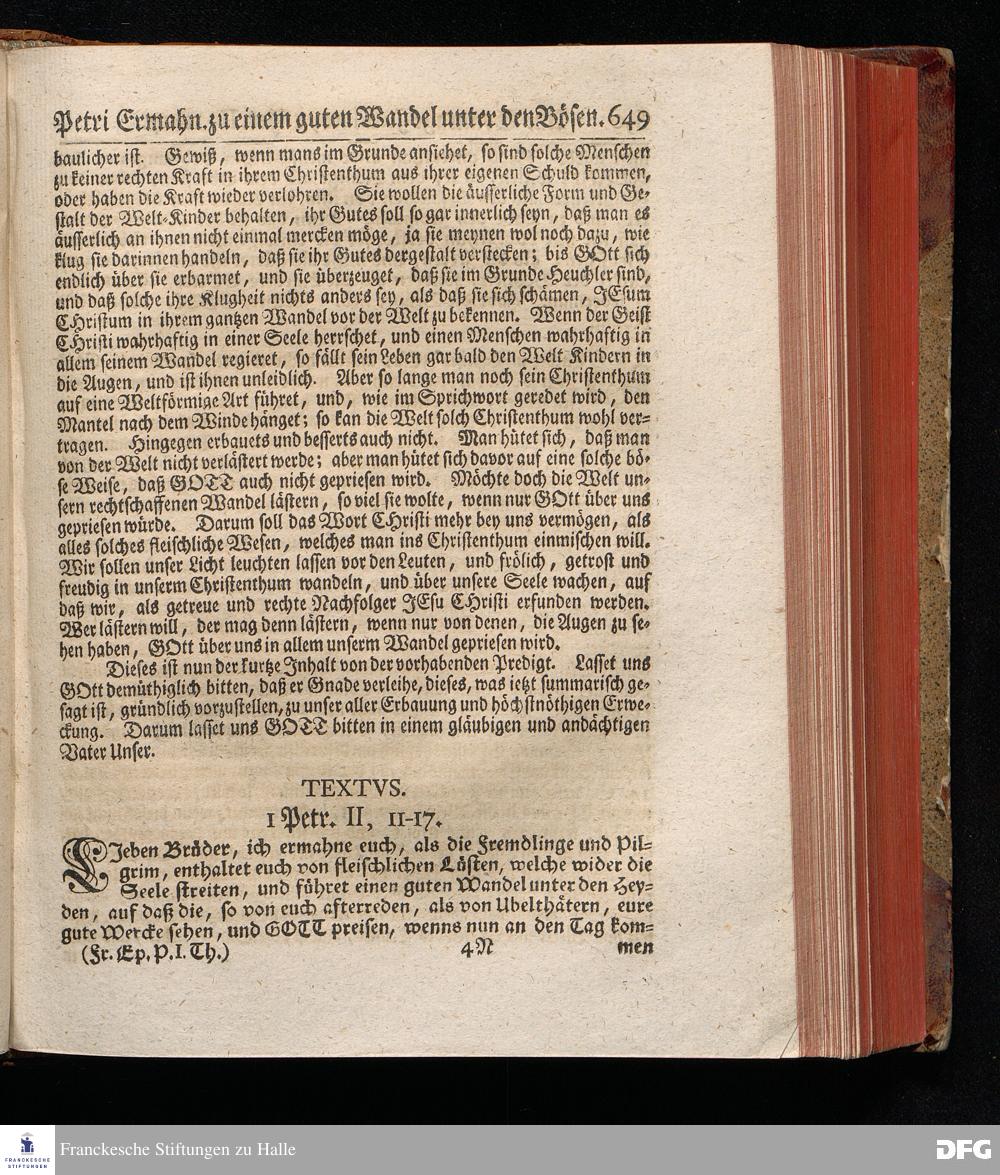 August Hermann Franckens, S.Theol.Prof.Past.Ulric.& Scholarchæ Predigten über die Sonn= und Fest=Tags=Episteln / Nebst einer Vorrede vom erbaulichen predigen, und von dem rechten Gebrauch dieser Predigten, auch Mit nöthigen Registern versehen. Die dritte EDITION. HALLE, in Verlegung des Wäysen=Hauses, MDCCXXXXI.