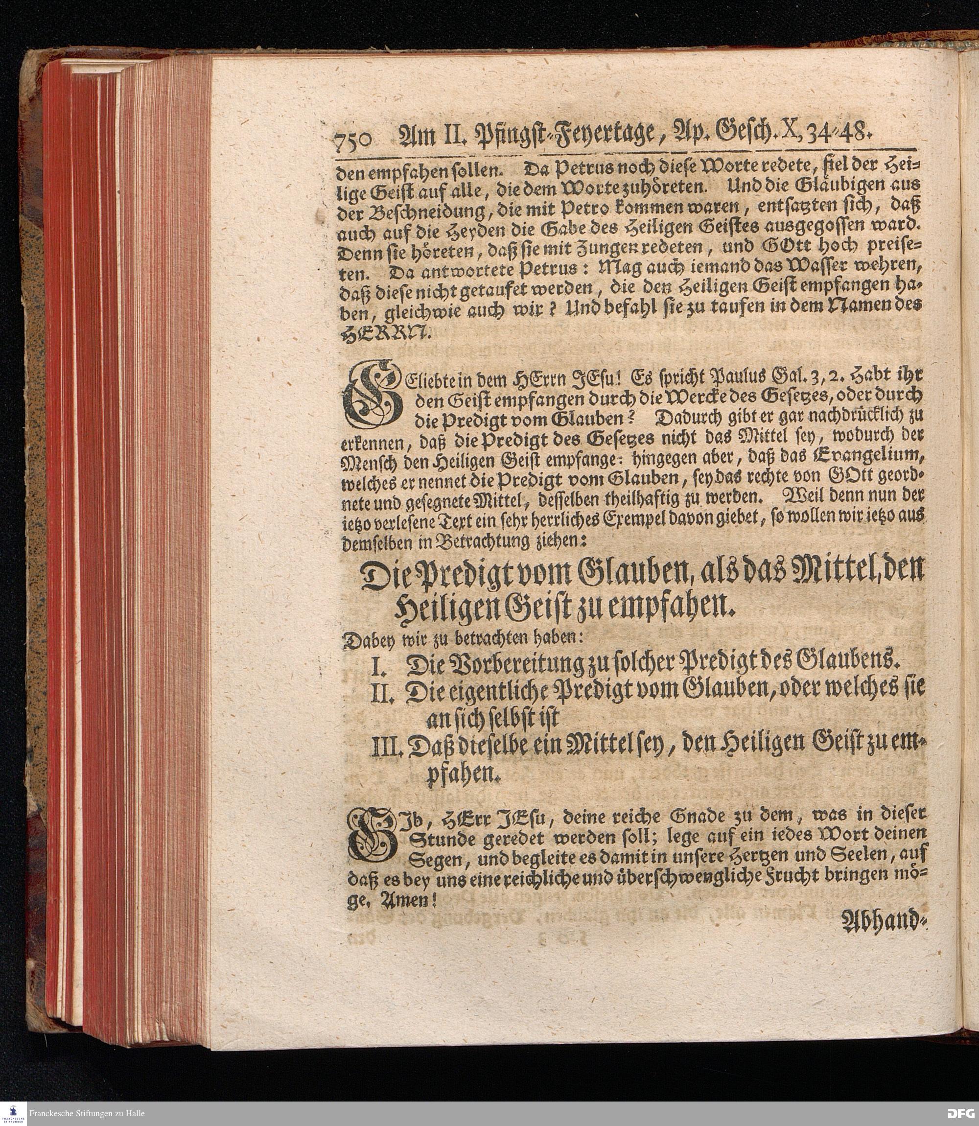 August Hermann Franckens, S.Theol.Prof.Past.Ulric.& Scholarchæ Predigten über die Sonn= und Fest=Tags=Episteln / Nebst einer Vorrede vom erbaulichen predigen, und von dem rechten Gebrauch dieser Predigten, auch Mit nöthigen Registern versehen. Die dritte EDITION. HALLE, in Verlegung des Wäysen=Hauses, MDCCXXXXI.
