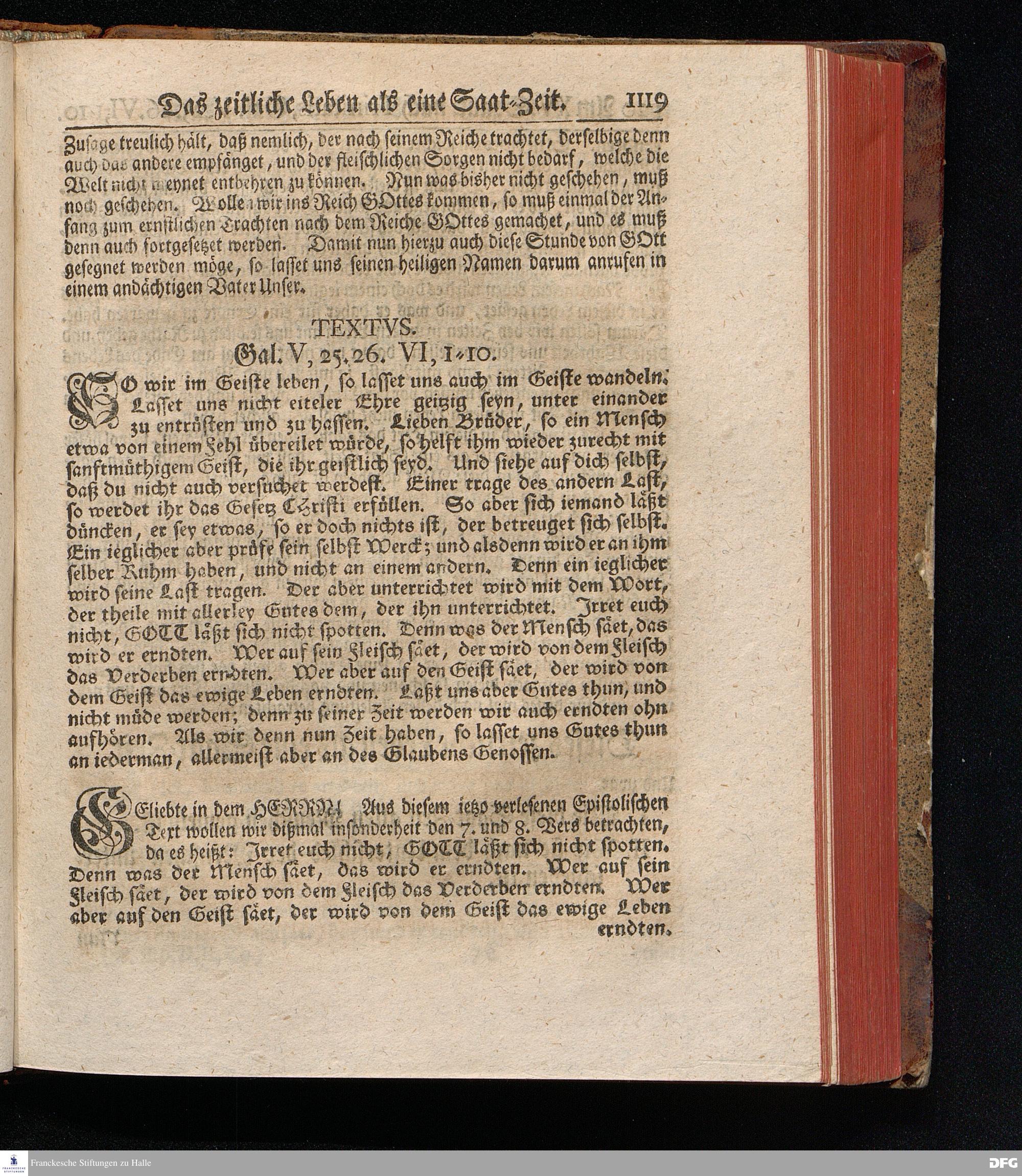 August Hermann Franckens, S.Theol.Prof.Past.Ulric.& Scholarchæ Predigten über die Sonn= und Fest=Tags=Episteln / Nebst einer Vorrede vom erbaulichen predigen, und von dem rechten Gebrauch dieser Predigten, auch Mit nöthigen Registern versehen. Die dritte EDITION. HALLE, in Verlegung des Wäysen=Hauses, MDCCXXXXI.