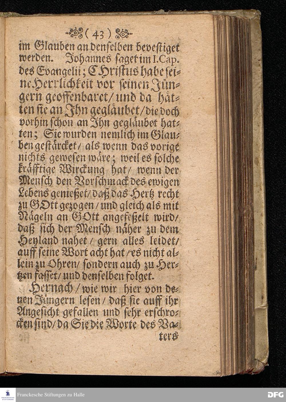 Der Vorschmack des ewigen Lebens / In einer Predigt Uber das Evangelium Matth.XVII, v.1==9, am 6.Sonntag nach Epiphan. Anno 1698, In der St.Georgen=Kirche zu Glaucha an Halle vorgestellet von M.August Hermann Francken / Gr.& OO.LL.P.P.& P.Glauch. HALLE / Gedruckt bey Christian Henckel / Univers.Buchdr.1698.
