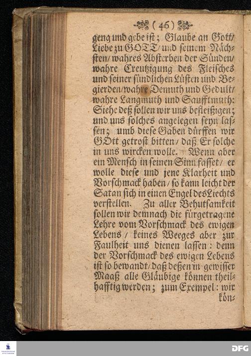Der Vorschmack des ewigen Lebens / In einer Predigt Uber das Evangelium Matth.XVII, v.1==9, am 6.Sonntag nach Epiphan. Anno 1698, In der St.Georgen=Kirche zu Glaucha an Halle vorgestellet von M.August Hermann Francken / Gr.& OO.LL.P.P.& P.Glauch. HALLE / Gedruckt bey Christian Henckel / Univers.Buchdr.1698.