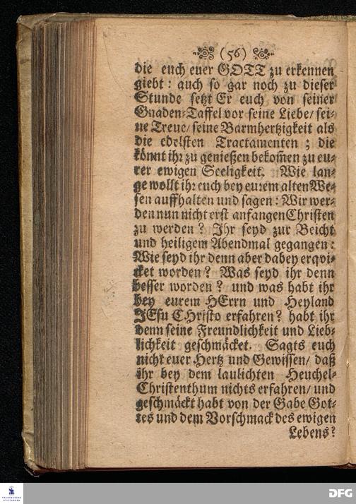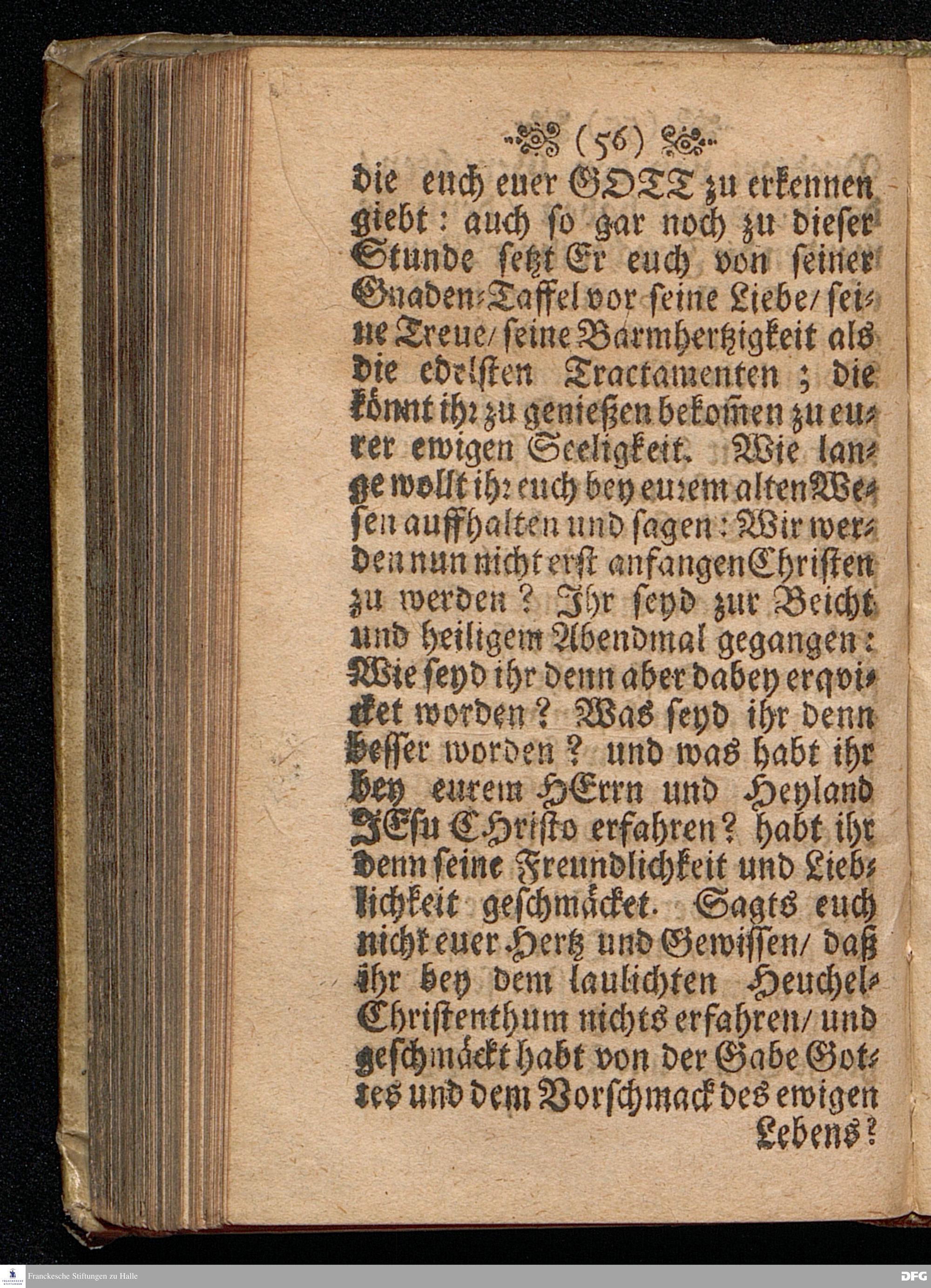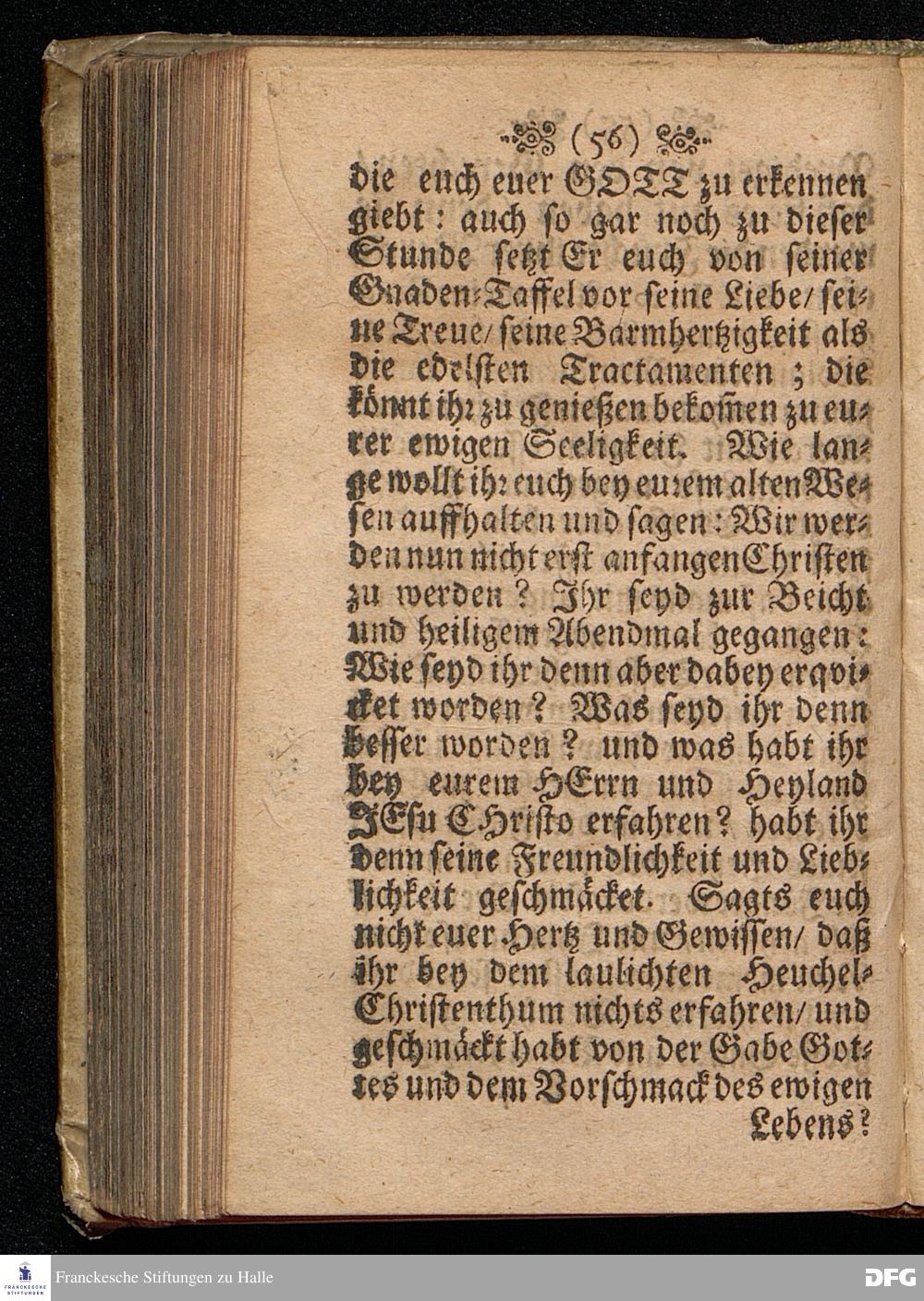 Der Vorschmack des ewigen Lebens / In einer Predigt Uber das Evangelium Matth.XVII, v.1==9, am 6.Sonntag nach Epiphan. Anno 1698, In der St.Georgen=Kirche zu Glaucha an Halle vorgestellet von M.August Hermann Francken / Gr.& OO.LL.P.P.& P.Glauch. HALLE / Gedruckt bey Christian Henckel / Univers.Buchdr.1698.