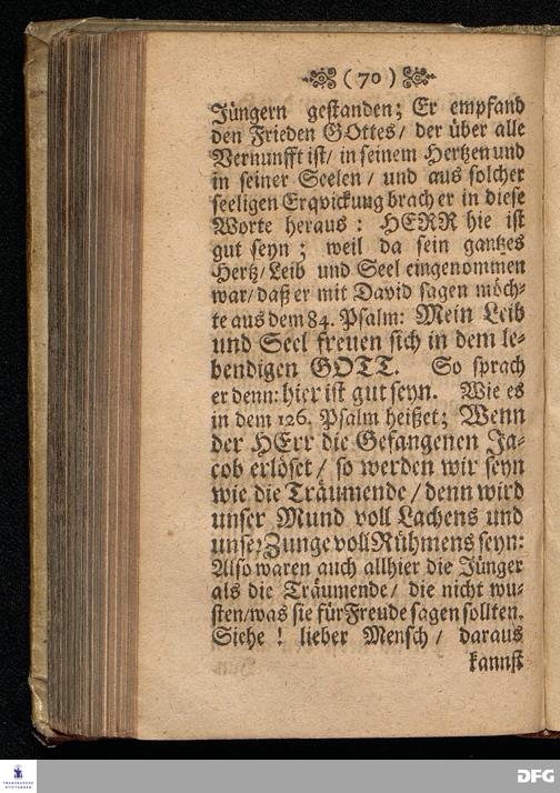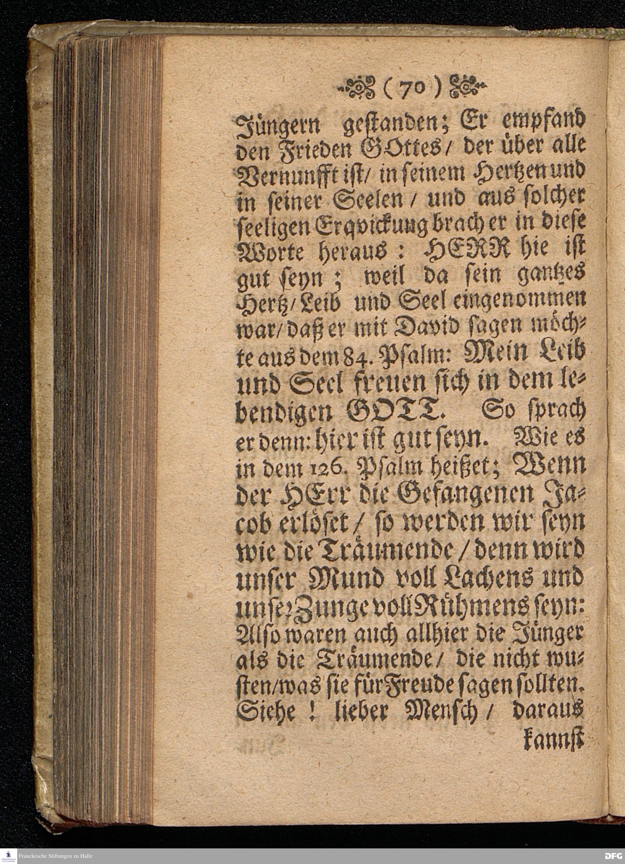 Der Vorschmack des ewigen Lebens / In einer Predigt Uber das Evangelium Matth.XVII, v.1==9, am 6.Sonntag nach Epiphan. Anno 1698, In der St.Georgen=Kirche zu Glaucha an Halle vorgestellet von M.August Hermann Francken / Gr.& OO.LL.P.P.& P.Glauch. HALLE / Gedruckt bey Christian Henckel / Univers.Buchdr.1698.