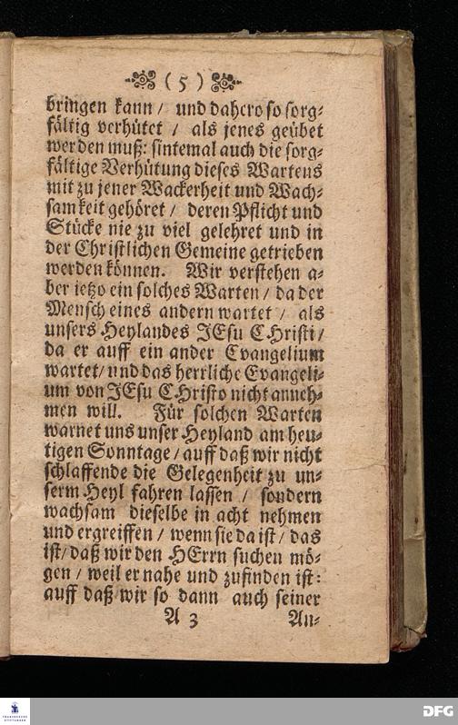 Das Gefährliche und verdammliche Harren auff die Offenbarung JEsu CHristi / In dem Exempel der Jünger Johannis und des Jüdischen Volcks vorgestellet Uber das Evangelium Matth.XI, v.[2-10]. Am 3ten Sonntage des Advents A.M.DC.XCIIX. In der St.Georgen=Kirche zu Glaucha an Halle / von M.August Hermann Francken / SS.Theol.Gr.& OO.LL.PP. Ord.& P.Glauch. HALLE / Gedruckt bey Christ. Henckel / 1699.