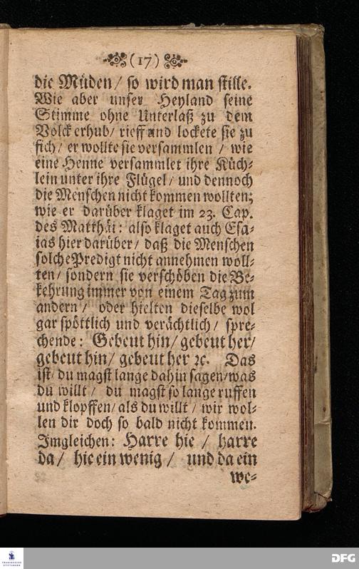 Das Gefährliche und verdammliche Harren auff die Offenbarung JEsu CHristi / In dem Exempel der Jünger Johannis und des Jüdischen Volcks vorgestellet Uber das Evangelium Matth.XI, v.[2-10]. Am 3ten Sonntage des Advents A.M.DC.XCIIX. In der St.Georgen=Kirche zu Glaucha an Halle / von M.August Hermann Francken / SS.Theol.Gr.& OO.LL.PP. Ord.& P.Glauch. HALLE / Gedruckt bey Christ. Henckel / 1699.