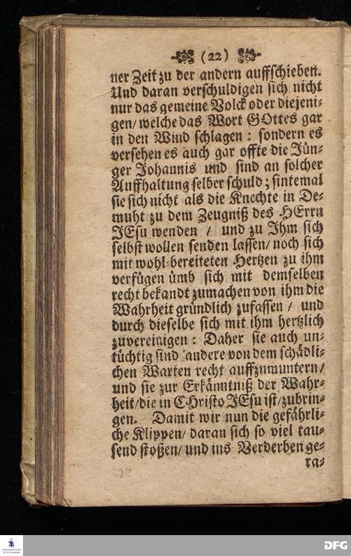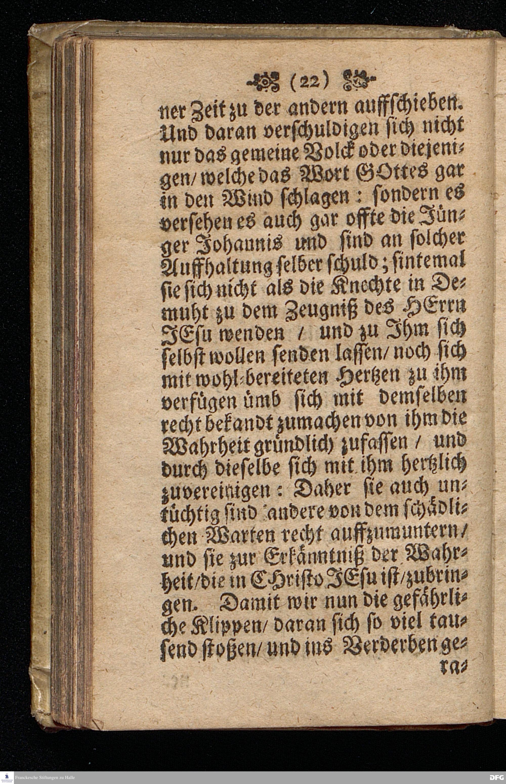 Das Gefährliche und verdammliche Harren auff die Offenbarung JEsu CHristi / In dem Exempel der Jünger Johannis und des Jüdischen Volcks vorgestellet Uber das Evangelium Matth.XI, v.[2-10]. Am 3ten Sonntage des Advents A.M.DC.XCIIX. In der St.Georgen=Kirche zu Glaucha an Halle / von M.August Hermann Francken / SS.Theol.Gr.& OO.LL.PP. Ord.& P.Glauch. HALLE / Gedruckt bey Christ. Henckel / 1699.