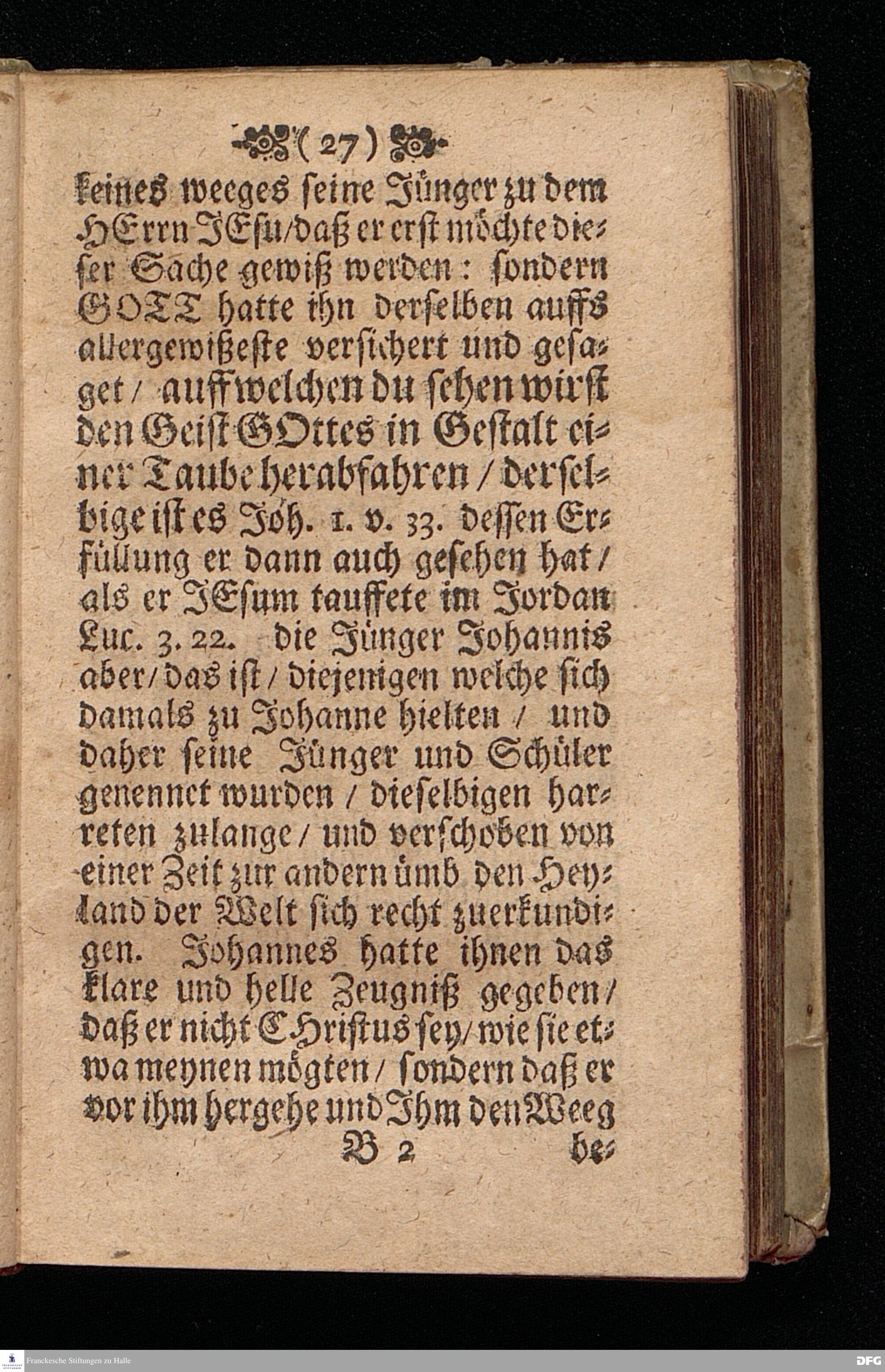 Das Gefährliche und verdammliche Harren auff die Offenbarung JEsu CHristi / In dem Exempel der Jünger Johannis und des Jüdischen Volcks vorgestellet Uber das Evangelium Matth.XI, v.[2-10]. Am 3ten Sonntage des Advents A.M.DC.XCIIX. In der St.Georgen=Kirche zu Glaucha an Halle / von M.August Hermann Francken / SS.Theol.Gr.& OO.LL.PP. Ord.& P.Glauch. HALLE / Gedruckt bey Christ. Henckel / 1699.