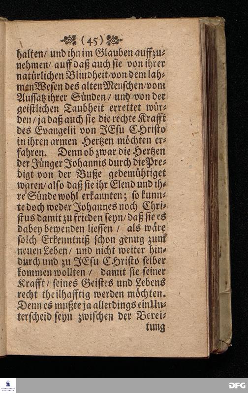 Das Gefährliche und verdammliche Harren auff die Offenbarung JEsu CHristi / In dem Exempel der Jünger Johannis und des Jüdischen Volcks vorgestellet Uber das Evangelium Matth.XI, v.[2-10]. Am 3ten Sonntage des Advents A.M.DC.XCIIX. In der St.Georgen=Kirche zu Glaucha an Halle / von M.August Hermann Francken / SS.Theol.Gr.& OO.LL.PP. Ord.& P.Glauch. HALLE / Gedruckt bey Christ. Henckel / 1699.