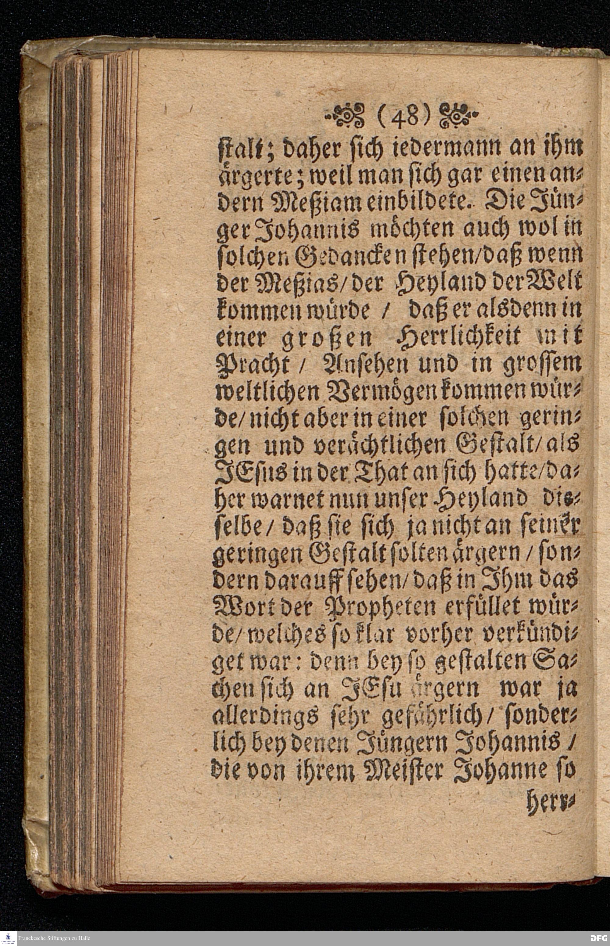 Das Gefährliche und verdammliche Harren auff die Offenbarung JEsu CHristi / In dem Exempel der Jünger Johannis und des Jüdischen Volcks vorgestellet Uber das Evangelium Matth.XI, v.[2-10]. Am 3ten Sonntage des Advents A.M.DC.XCIIX. In der St.Georgen=Kirche zu Glaucha an Halle / von M.August Hermann Francken / SS.Theol.Gr.& OO.LL.PP. Ord.& P.Glauch. HALLE / Gedruckt bey Christ. Henckel / 1699.