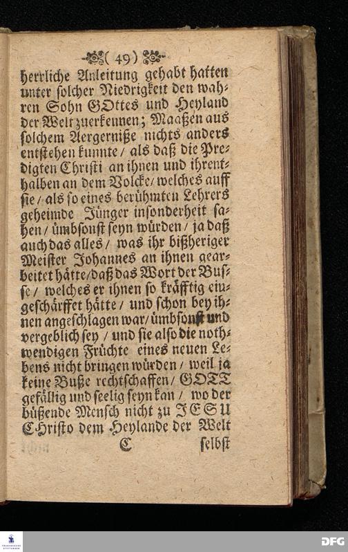 Das Gefährliche und verdammliche Harren auff die Offenbarung JEsu CHristi / In dem Exempel der Jünger Johannis und des Jüdischen Volcks vorgestellet Uber das Evangelium Matth.XI, v.[2-10]. Am 3ten Sonntage des Advents A.M.DC.XCIIX. In der St.Georgen=Kirche zu Glaucha an Halle / von M.August Hermann Francken / SS.Theol.Gr.& OO.LL.PP. Ord.& P.Glauch. HALLE / Gedruckt bey Christ. Henckel / 1699.