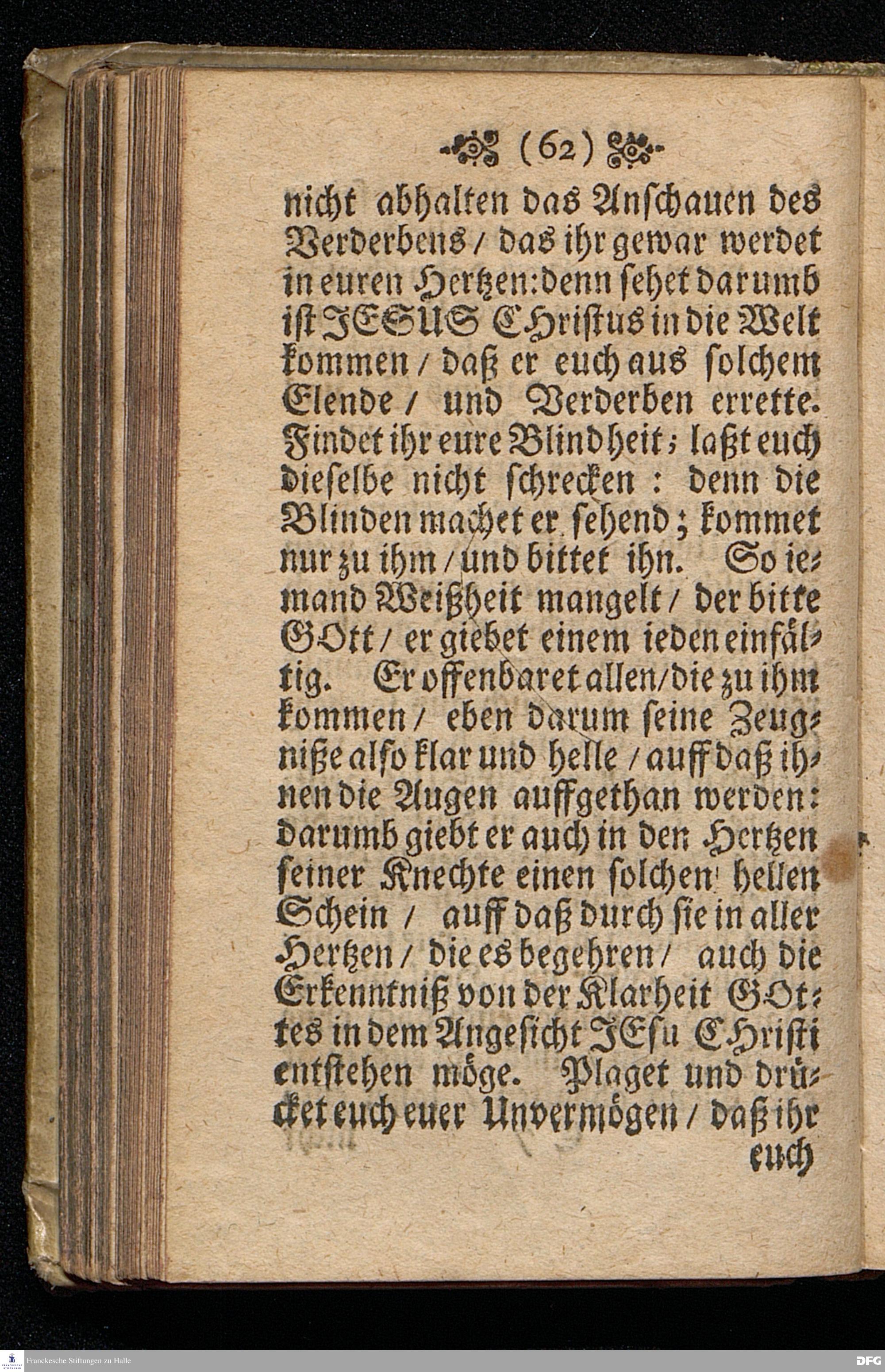 Das Gefährliche und verdammliche Harren auff die Offenbarung JEsu CHristi / In dem Exempel der Jünger Johannis und des Jüdischen Volcks vorgestellet Uber das Evangelium Matth.XI, v.[2-10]. Am 3ten Sonntage des Advents A.M.DC.XCIIX. In der St.Georgen=Kirche zu Glaucha an Halle / von M.August Hermann Francken / SS.Theol.Gr.& OO.LL.PP. Ord.& P.Glauch. HALLE / Gedruckt bey Christ. Henckel / 1699.