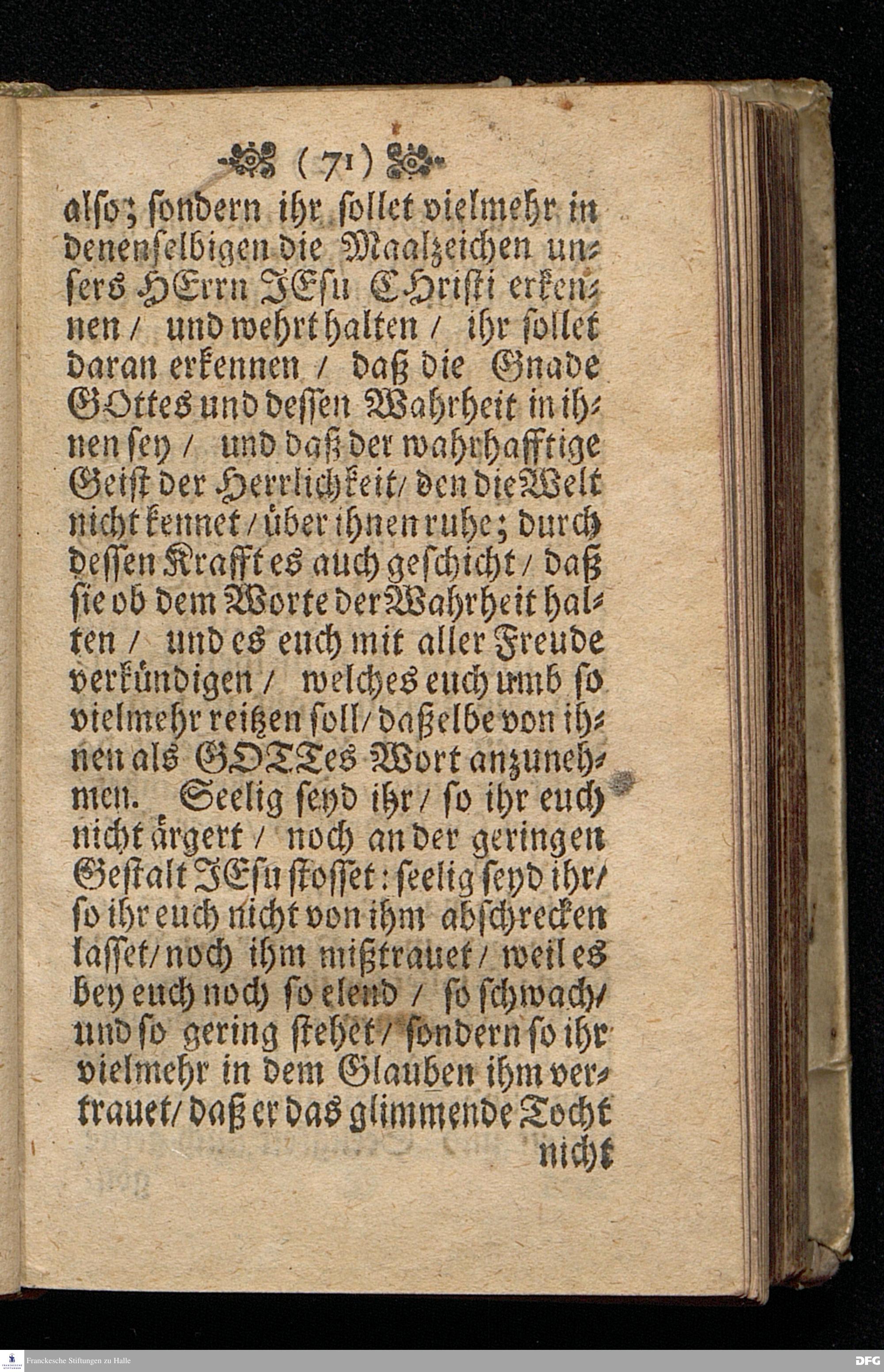 Das Gefährliche und verdammliche Harren auff die Offenbarung JEsu CHristi / In dem Exempel der Jünger Johannis und des Jüdischen Volcks vorgestellet Uber das Evangelium Matth.XI, v.[2-10]. Am 3ten Sonntage des Advents A.M.DC.XCIIX. In der St.Georgen=Kirche zu Glaucha an Halle / von M.August Hermann Francken / SS.Theol.Gr.& OO.LL.PP. Ord.& P.Glauch. HALLE / Gedruckt bey Christ. Henckel / 1699.