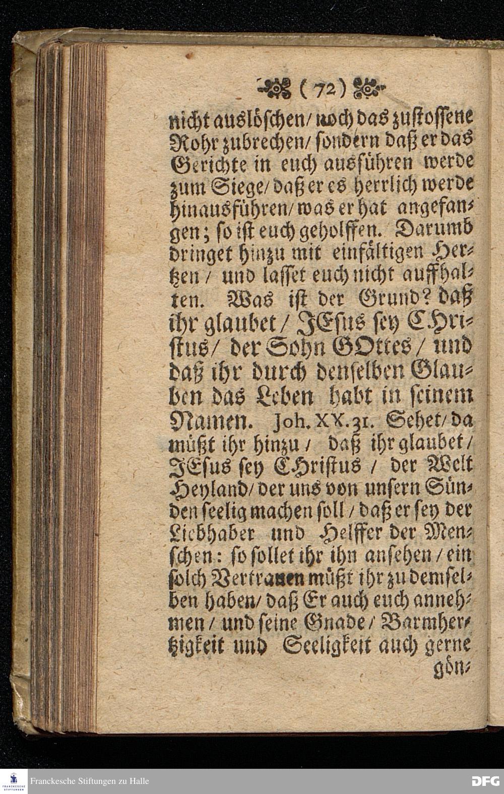 Das Gefährliche und verdammliche Harren auff die Offenbarung JEsu CHristi / In dem Exempel der Jünger Johannis und des Jüdischen Volcks vorgestellet Uber das Evangelium Matth.XI, v.[2-10]. Am 3ten Sonntage des Advents A.M.DC.XCIIX. In der St.Georgen=Kirche zu Glaucha an Halle / von M.August Hermann Francken / SS.Theol.Gr.& OO.LL.PP. Ord.& P.Glauch. HALLE / Gedruckt bey Christ. Henckel / 1699.