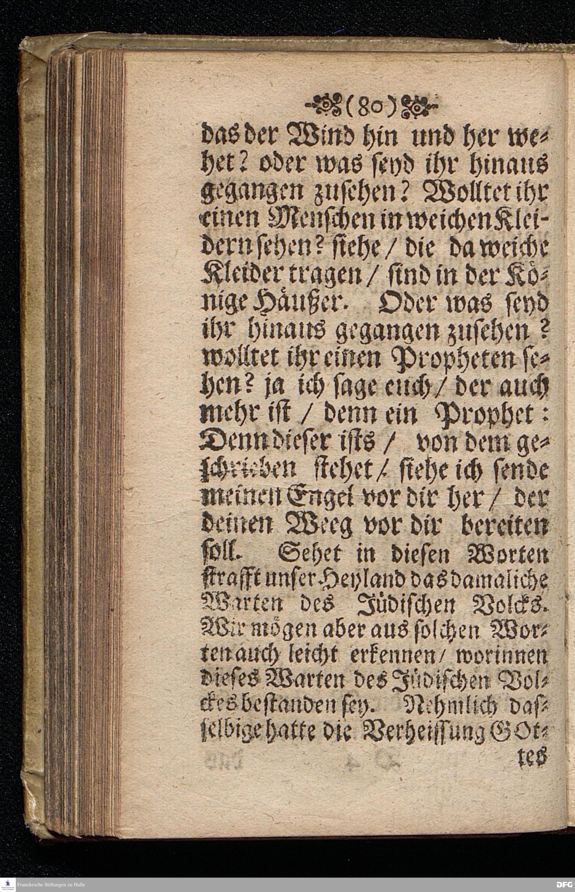 Das Gefährliche und verdammliche Harren auff die Offenbarung JEsu CHristi / In dem Exempel der Jünger Johannis und des Jüdischen Volcks vorgestellet Uber das Evangelium Matth.XI, v.[2-10]. Am 3ten Sonntage des Advents A.M.DC.XCIIX. In der St.Georgen=Kirche zu Glaucha an Halle / von M.August Hermann Francken / SS.Theol.Gr.& OO.LL.PP. Ord.& P.Glauch. HALLE / Gedruckt bey Christ. Henckel / 1699.