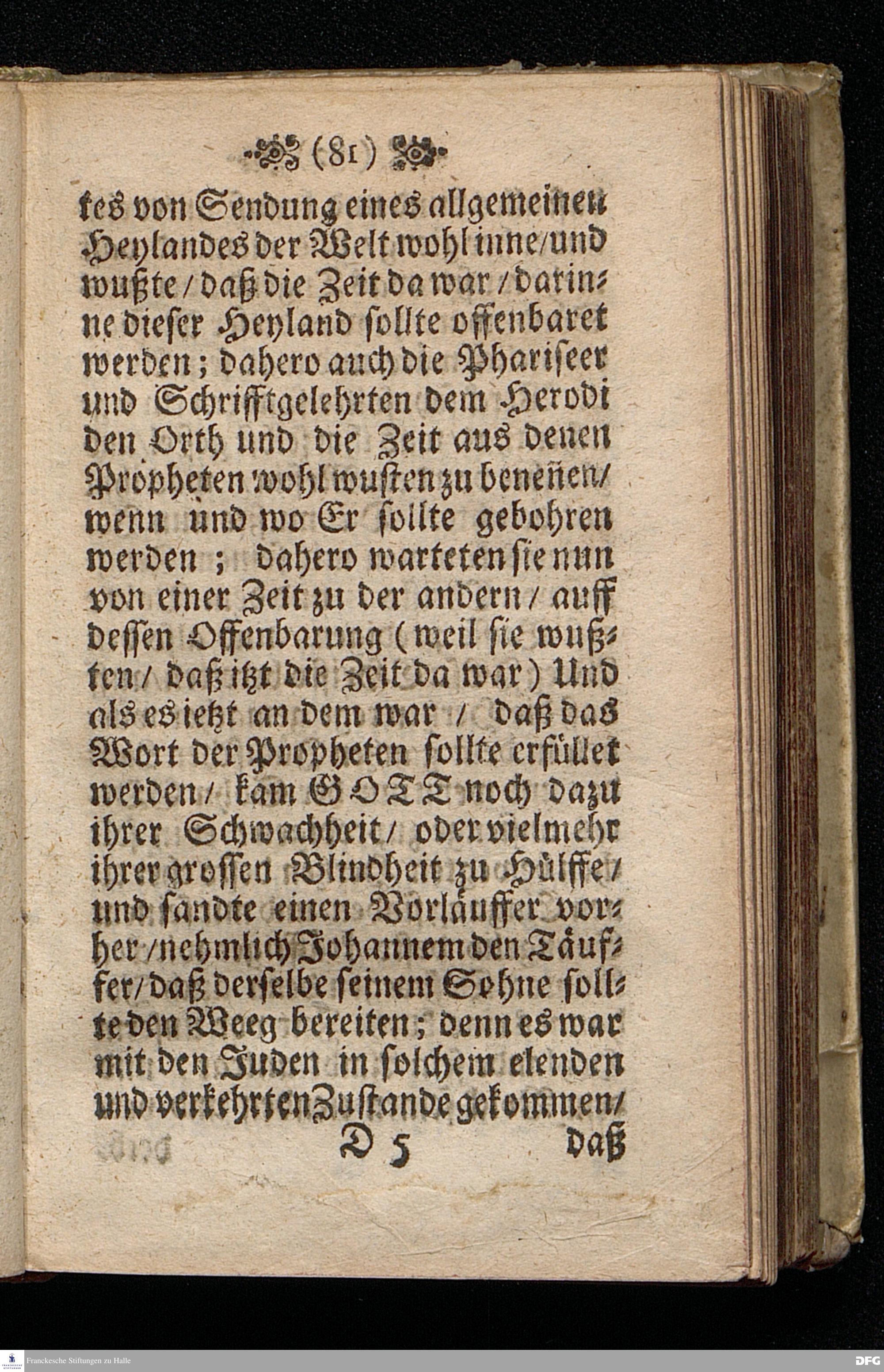 Das Gefährliche und verdammliche Harren auff die Offenbarung JEsu CHristi / In dem Exempel der Jünger Johannis und des Jüdischen Volcks vorgestellet Uber das Evangelium Matth.XI, v.[2-10]. Am 3ten Sonntage des Advents A.M.DC.XCIIX. In der St.Georgen=Kirche zu Glaucha an Halle / von M.August Hermann Francken / SS.Theol.Gr.& OO.LL.PP. Ord.& P.Glauch. HALLE / Gedruckt bey Christ. Henckel / 1699.