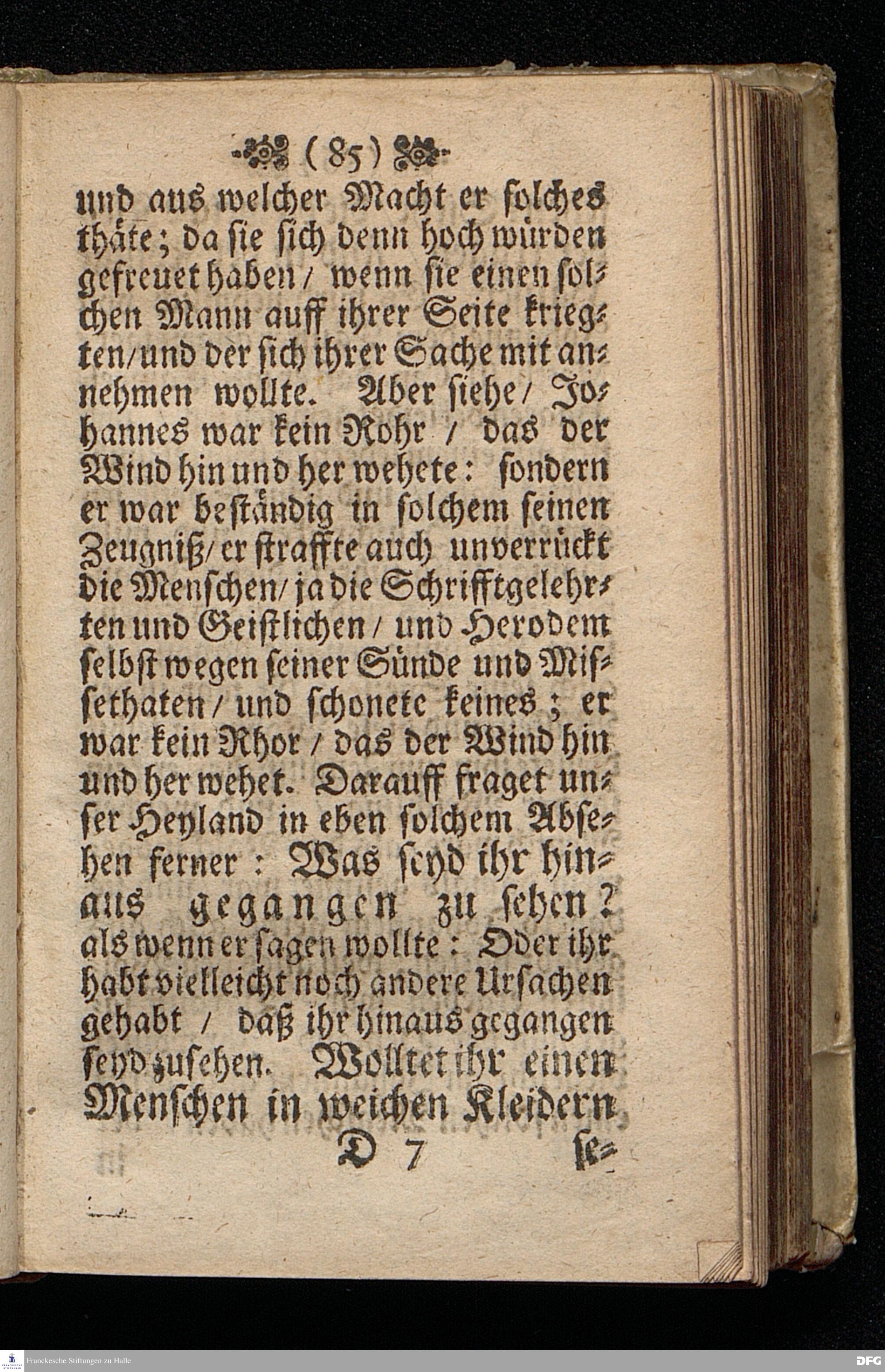 Das Gefährliche und verdammliche Harren auff die Offenbarung JEsu CHristi / In dem Exempel der Jünger Johannis und des Jüdischen Volcks vorgestellet Uber das Evangelium Matth.XI, v.[2-10]. Am 3ten Sonntage des Advents A.M.DC.XCIIX. In der St.Georgen=Kirche zu Glaucha an Halle / von M.August Hermann Francken / SS.Theol.Gr.& OO.LL.PP. Ord.& P.Glauch. HALLE / Gedruckt bey Christ. Henckel / 1699.