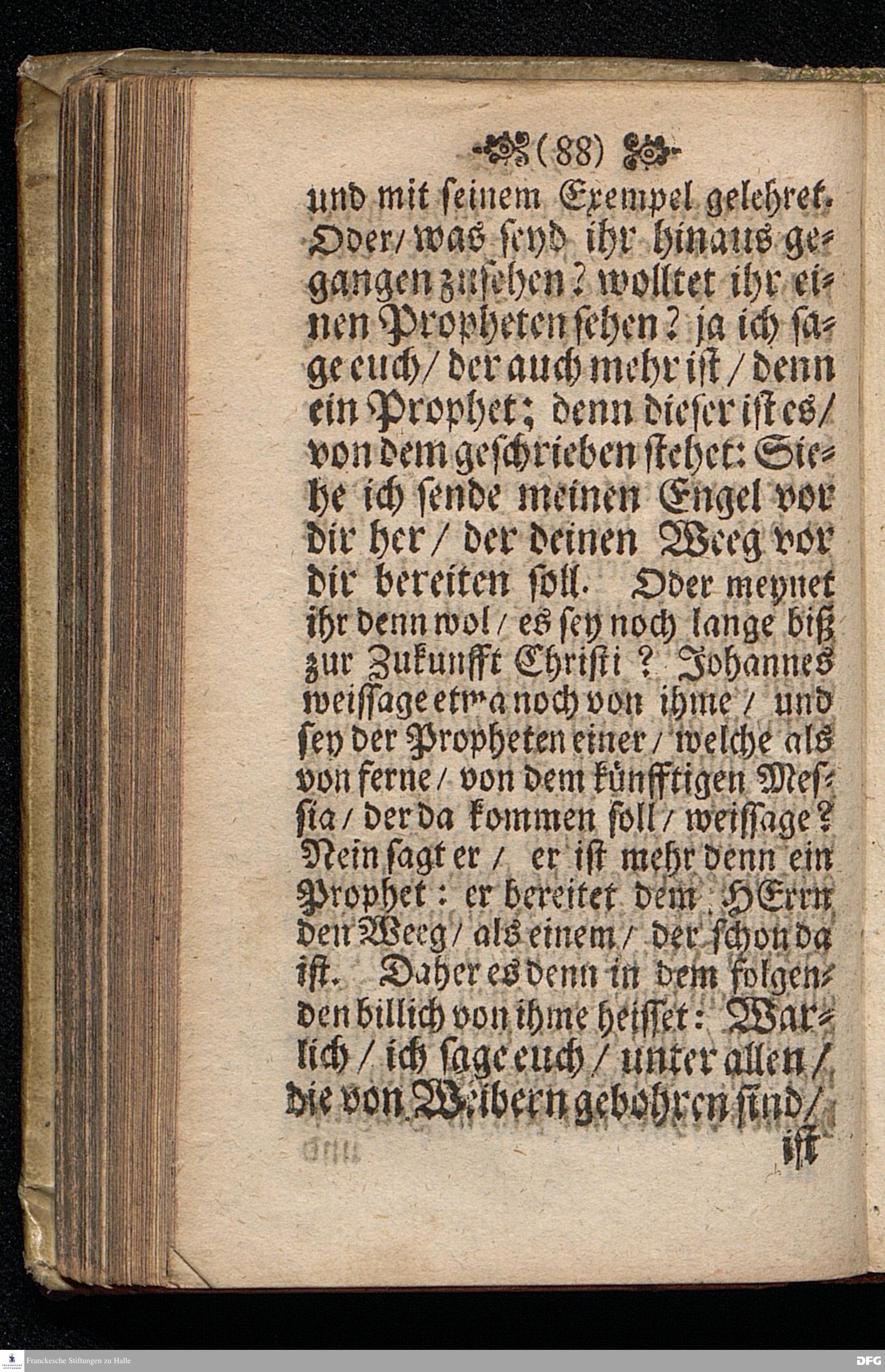 Das Gefährliche und verdammliche Harren auff die Offenbarung JEsu CHristi / In dem Exempel der Jünger Johannis und des Jüdischen Volcks vorgestellet Uber das Evangelium Matth.XI, v.[2-10]. Am 3ten Sonntage des Advents A.M.DC.XCIIX. In der St.Georgen=Kirche zu Glaucha an Halle / von M.August Hermann Francken / SS.Theol.Gr.& OO.LL.PP. Ord.& P.Glauch. HALLE / Gedruckt bey Christ. Henckel / 1699.