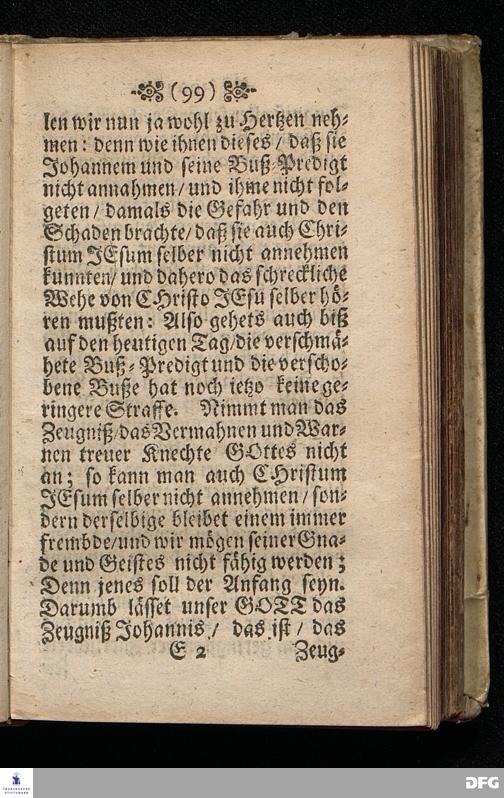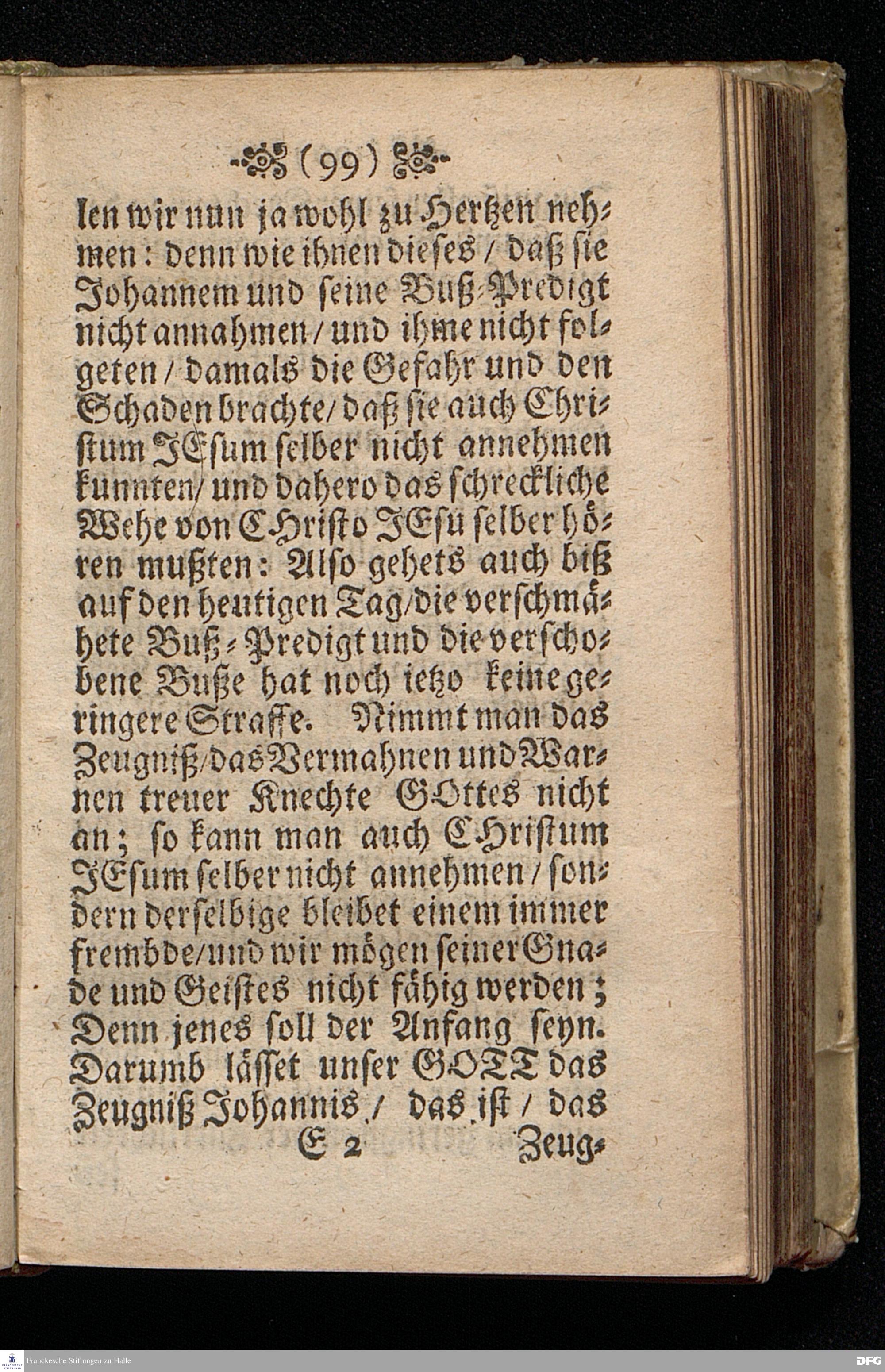 Das Gefährliche und verdammliche Harren auff die Offenbarung JEsu CHristi / In dem Exempel der Jünger Johannis und des Jüdischen Volcks vorgestellet Uber das Evangelium Matth.XI, v.[2-10]. Am 3ten Sonntage des Advents A.M.DC.XCIIX. In der St.Georgen=Kirche zu Glaucha an Halle / von M.August Hermann Francken / SS.Theol.Gr.& OO.LL.PP. Ord.& P.Glauch. HALLE / Gedruckt bey Christ. Henckel / 1699.