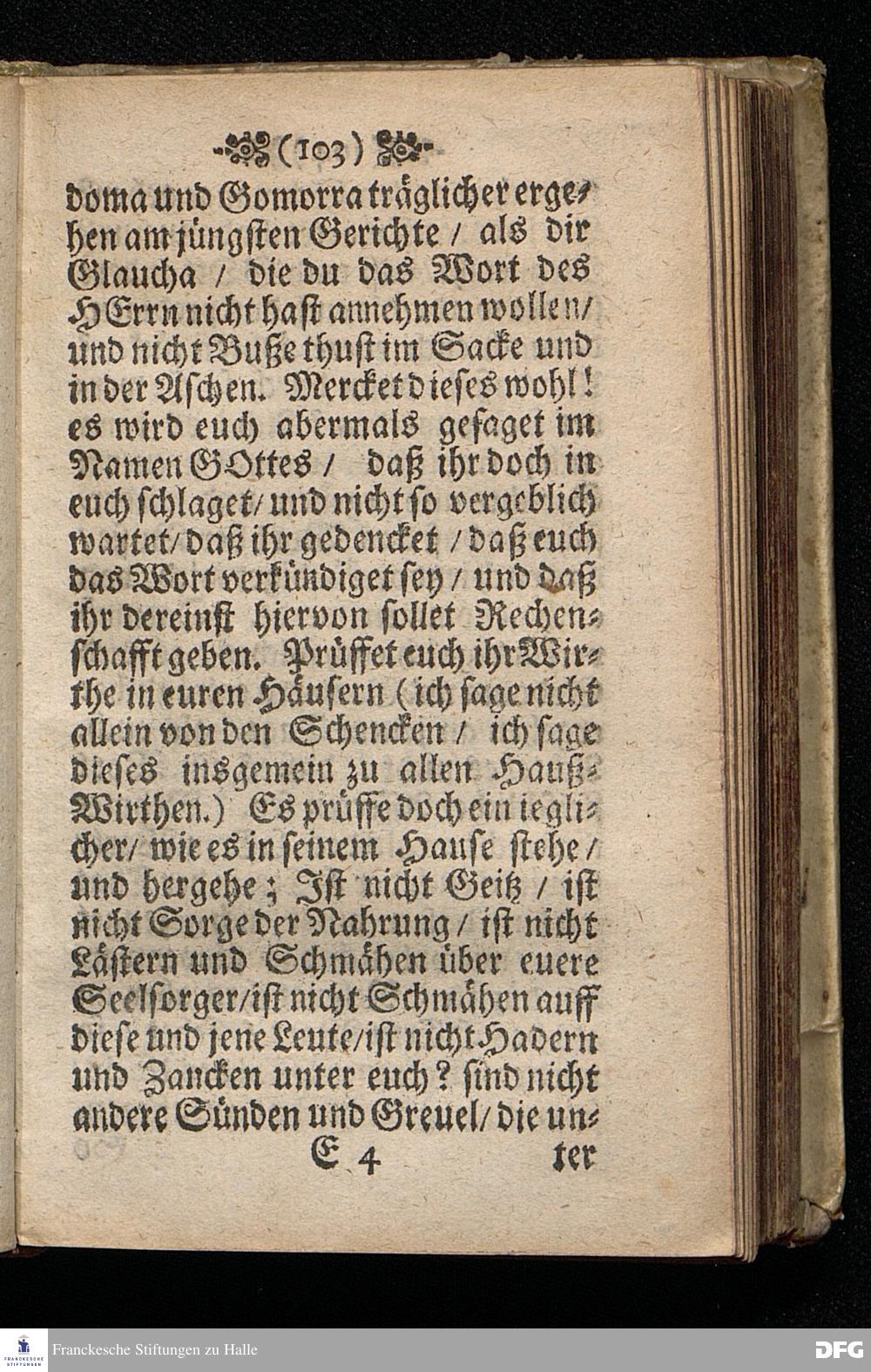 Das Gefährliche und verdammliche Harren auff die Offenbarung JEsu CHristi / In dem Exempel der Jünger Johannis und des Jüdischen Volcks vorgestellet Uber das Evangelium Matth.XI, v.[2-10]. Am 3ten Sonntage des Advents A.M.DC.XCIIX. In der St.Georgen=Kirche zu Glaucha an Halle / von M.August Hermann Francken / SS.Theol.Gr.& OO.LL.PP. Ord.& P.Glauch. HALLE / Gedruckt bey Christ. Henckel / 1699.