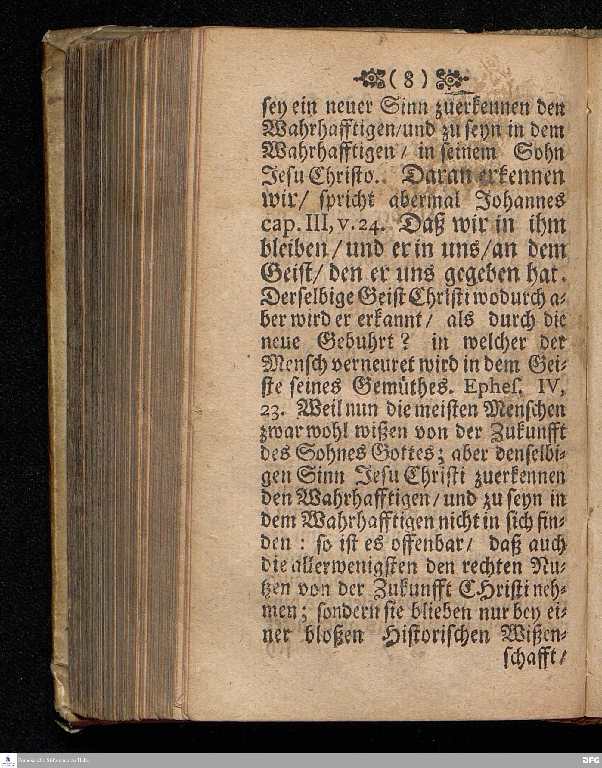 Der Sinn Christi Am XVII.Sonntag nach Trinit. ANNO 1698. In einer Predigt Uber das Evangelium Luc.XIV, vers.1==11. In der St.Georgen=Kirche zu Glaucha an Halle vorgestellet / von M.August Hermann Francken / SS.Theol.Gr.& OO.LL.P.P.Ord.& P.Glauch. HALLE / Gedruckt bey Christian Henckeln / Univers.Buchdr. 1699.
