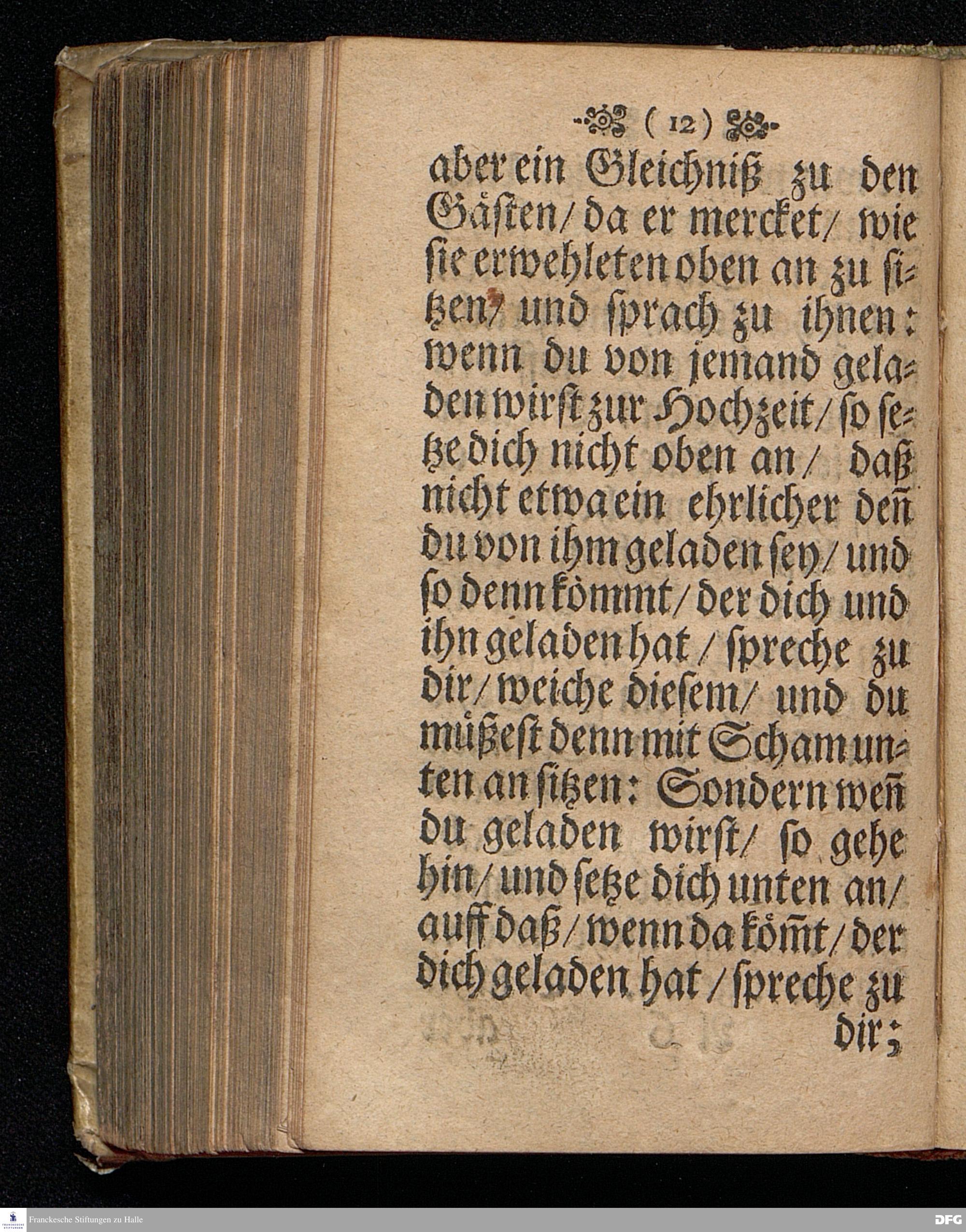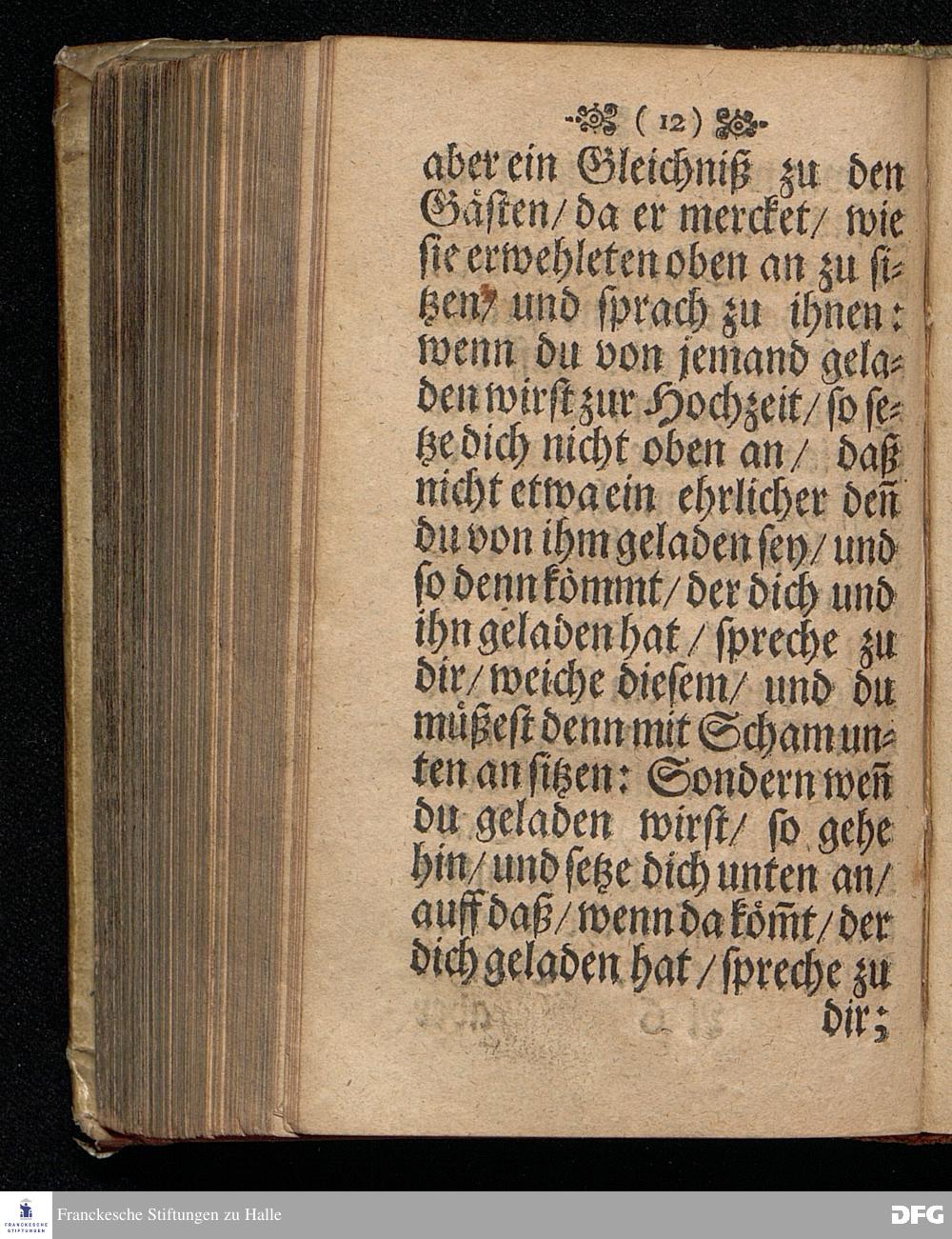 Der Sinn Christi Am XVII.Sonntag nach Trinit. ANNO 1698. In einer Predigt Uber das Evangelium Luc.XIV, vers.1==11. In der St.Georgen=Kirche zu Glaucha an Halle vorgestellet / von M.August Hermann Francken / SS.Theol.Gr.& OO.LL.P.P.Ord.& P.Glauch. HALLE / Gedruckt bey Christian Henckeln / Univers.Buchdr. 1699.