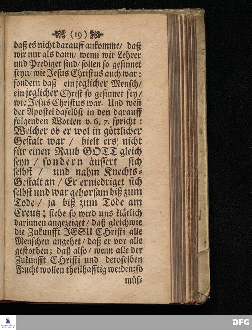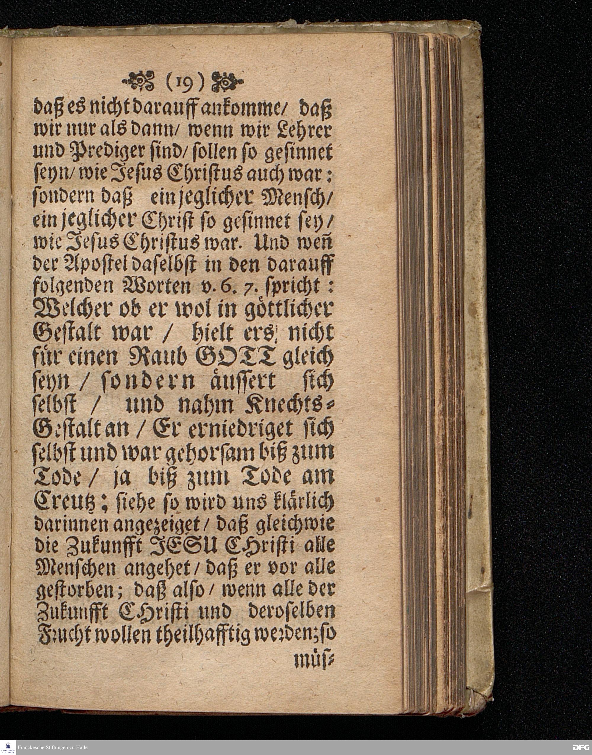 Der Sinn Christi Am XVII.Sonntag nach Trinit. ANNO 1698. In einer Predigt Uber das Evangelium Luc.XIV, vers.1==11. In der St.Georgen=Kirche zu Glaucha an Halle vorgestellet / von M.August Hermann Francken / SS.Theol.Gr.& OO.LL.P.P.Ord.& P.Glauch. HALLE / Gedruckt bey Christian Henckeln / Univers.Buchdr. 1699.