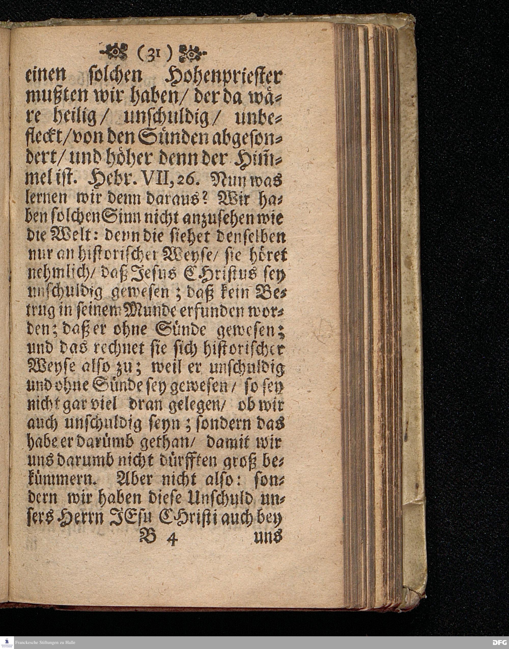 Der Sinn Christi Am XVII.Sonntag nach Trinit. ANNO 1698. In einer Predigt Uber das Evangelium Luc.XIV, vers.1==11. In der St.Georgen=Kirche zu Glaucha an Halle vorgestellet / von M.August Hermann Francken / SS.Theol.Gr.& OO.LL.P.P.Ord.& P.Glauch. HALLE / Gedruckt bey Christian Henckeln / Univers.Buchdr. 1699.
