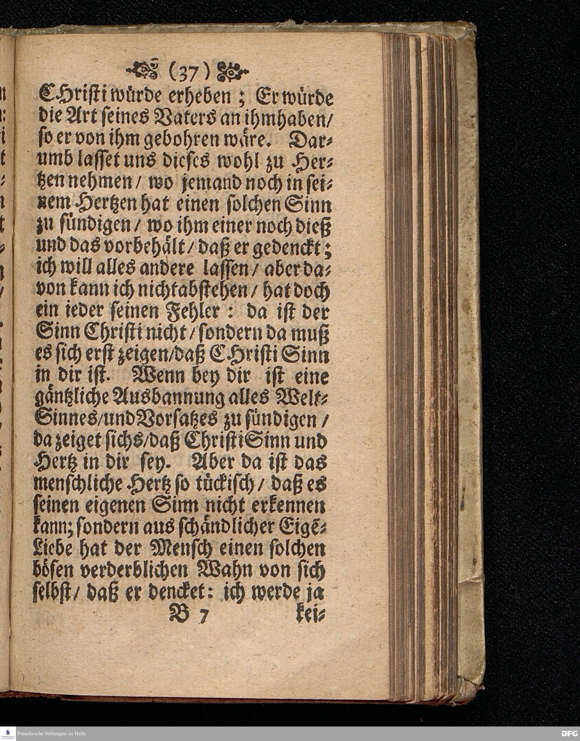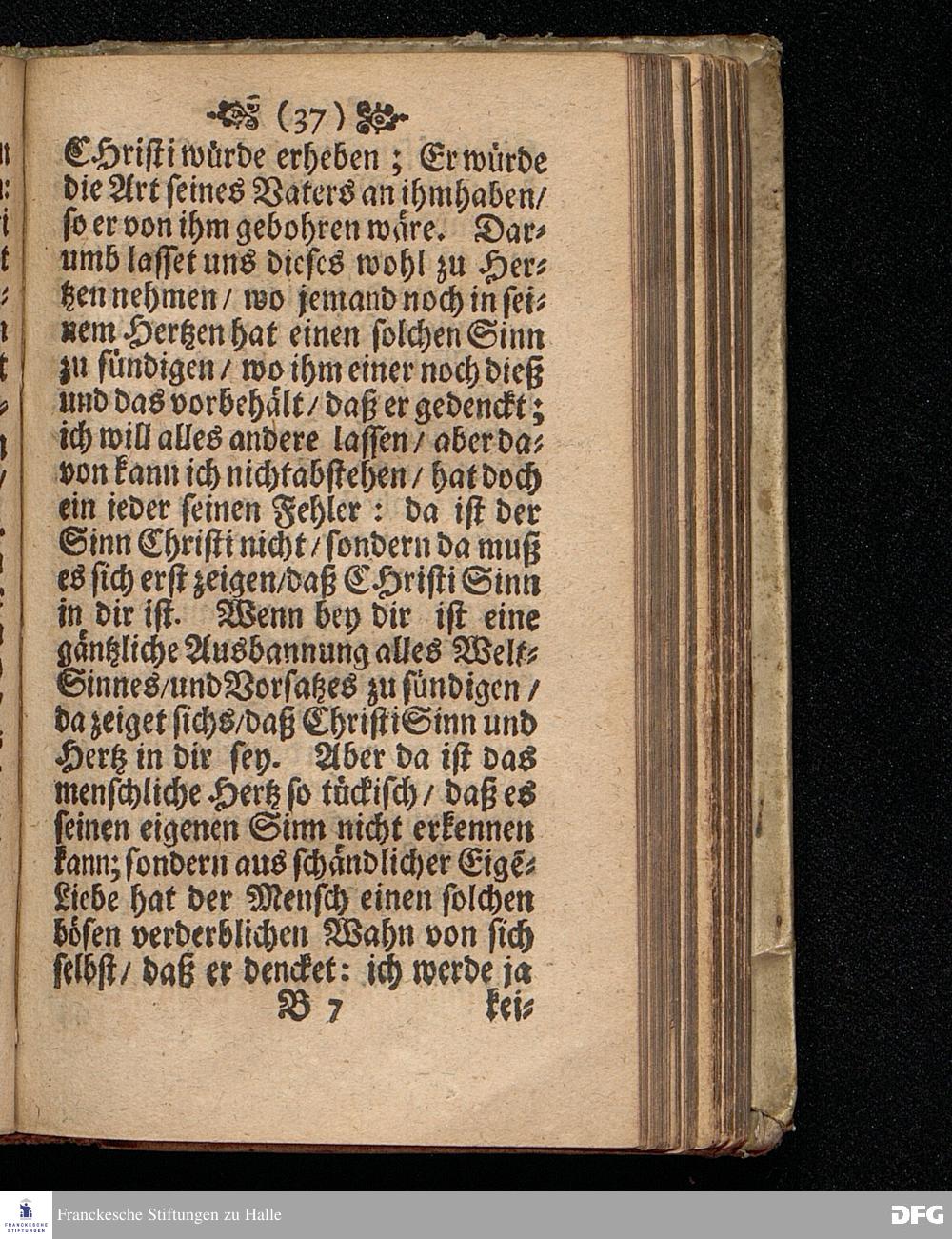 Der Sinn Christi Am XVII.Sonntag nach Trinit. ANNO 1698. In einer Predigt Uber das Evangelium Luc.XIV, vers.1==11. In der St.Georgen=Kirche zu Glaucha an Halle vorgestellet / von M.August Hermann Francken / SS.Theol.Gr.& OO.LL.P.P.Ord.& P.Glauch. HALLE / Gedruckt bey Christian Henckeln / Univers.Buchdr. 1699.