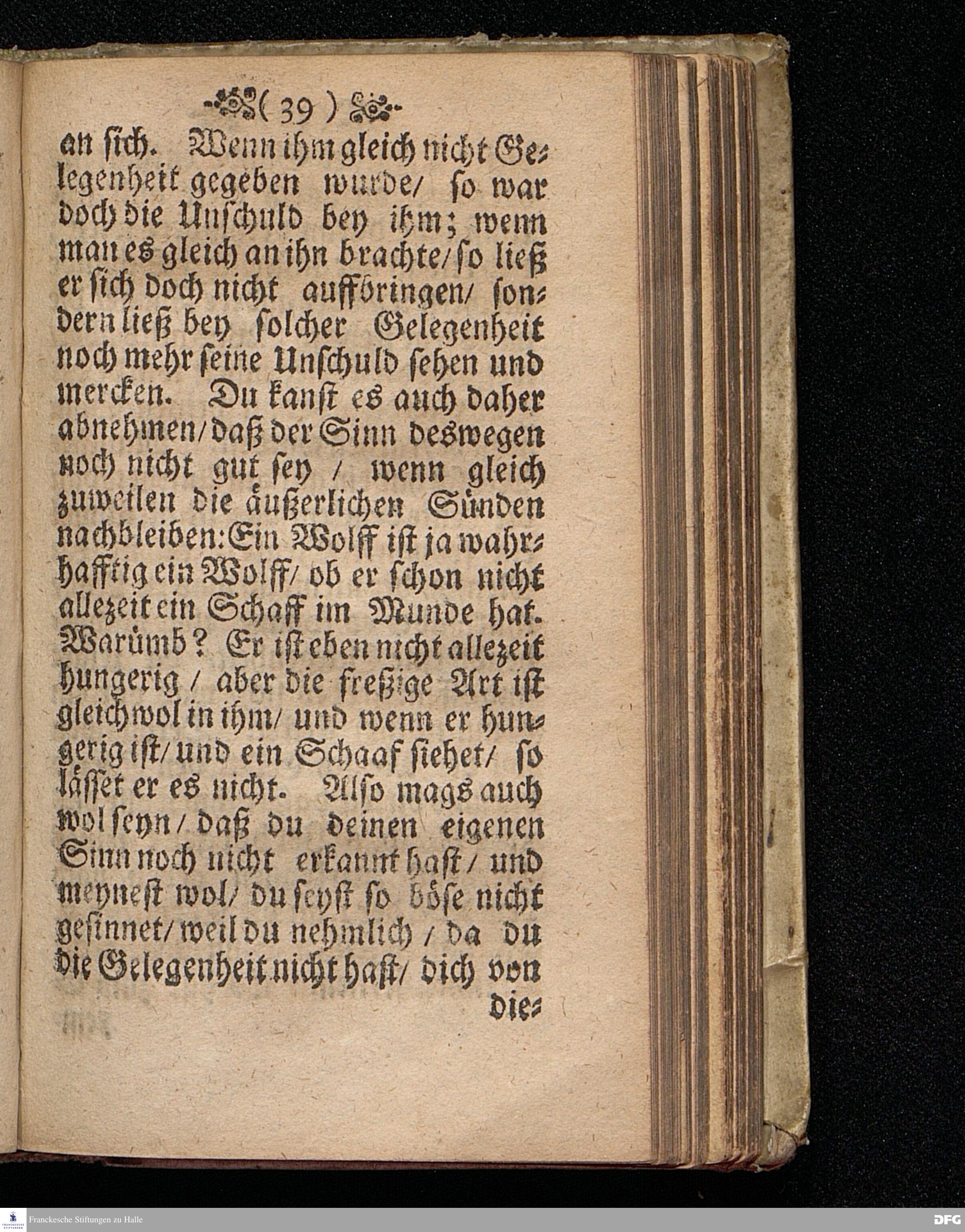 Der Sinn Christi Am XVII.Sonntag nach Trinit. ANNO 1698. In einer Predigt Uber das Evangelium Luc.XIV, vers.1==11. In der St.Georgen=Kirche zu Glaucha an Halle vorgestellet / von M.August Hermann Francken / SS.Theol.Gr.& OO.LL.P.P.Ord.& P.Glauch. HALLE / Gedruckt bey Christian Henckeln / Univers.Buchdr. 1699.