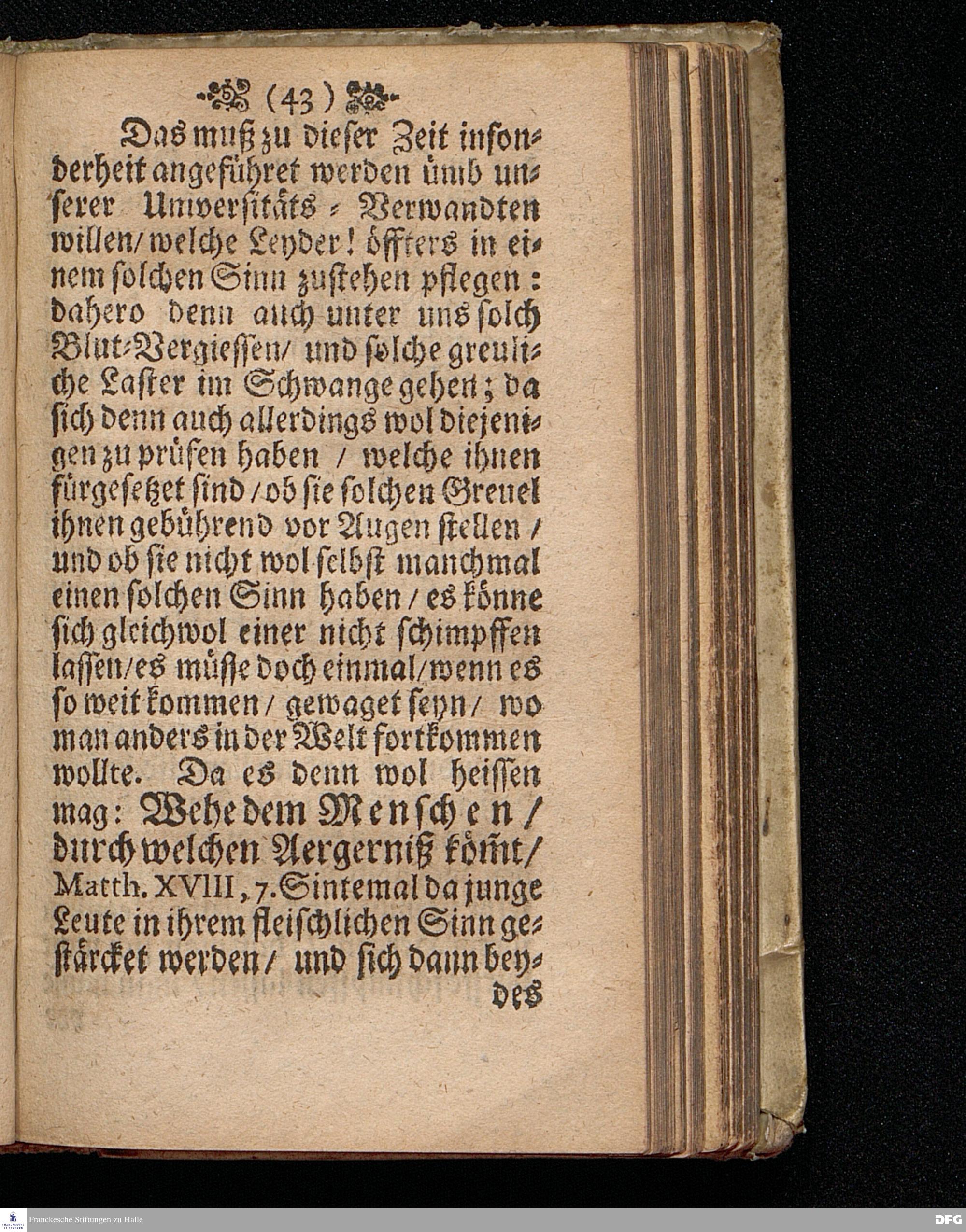 Der Sinn Christi Am XVII.Sonntag nach Trinit. ANNO 1698. In einer Predigt Uber das Evangelium Luc.XIV, vers.1==11. In der St.Georgen=Kirche zu Glaucha an Halle vorgestellet / von M.August Hermann Francken / SS.Theol.Gr.& OO.LL.P.P.Ord.& P.Glauch. HALLE / Gedruckt bey Christian Henckeln / Univers.Buchdr. 1699.