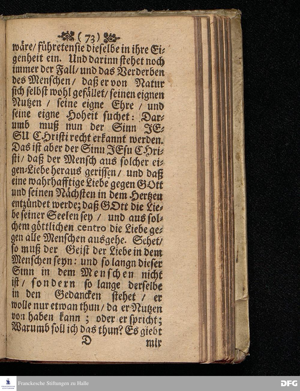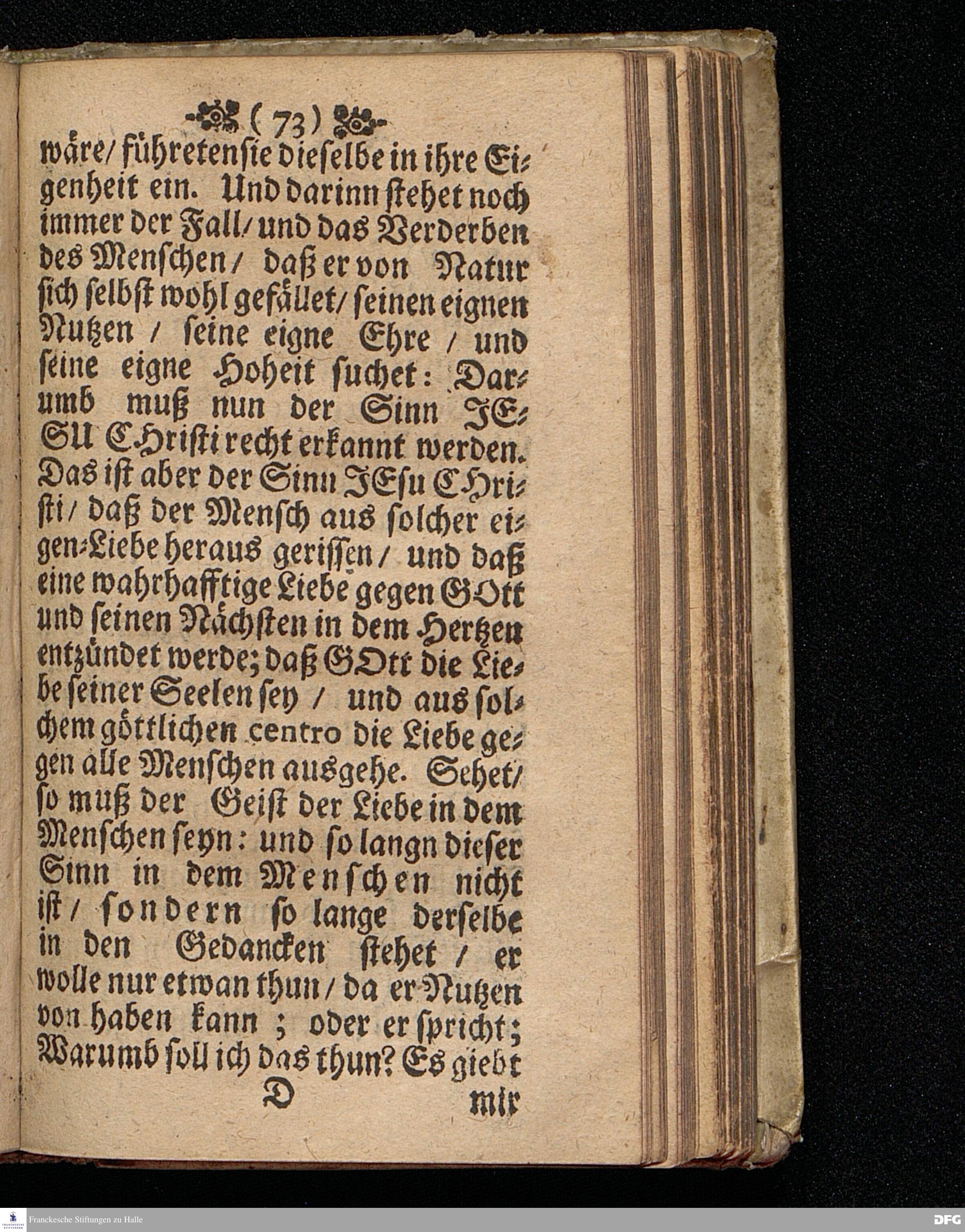Der Sinn Christi Am XVII.Sonntag nach Trinit. ANNO 1698. In einer Predigt Uber das Evangelium Luc.XIV, vers.1==11. In der St.Georgen=Kirche zu Glaucha an Halle vorgestellet / von M.August Hermann Francken / SS.Theol.Gr.& OO.LL.P.P.Ord.& P.Glauch. HALLE / Gedruckt bey Christian Henckeln / Univers.Buchdr. 1699.