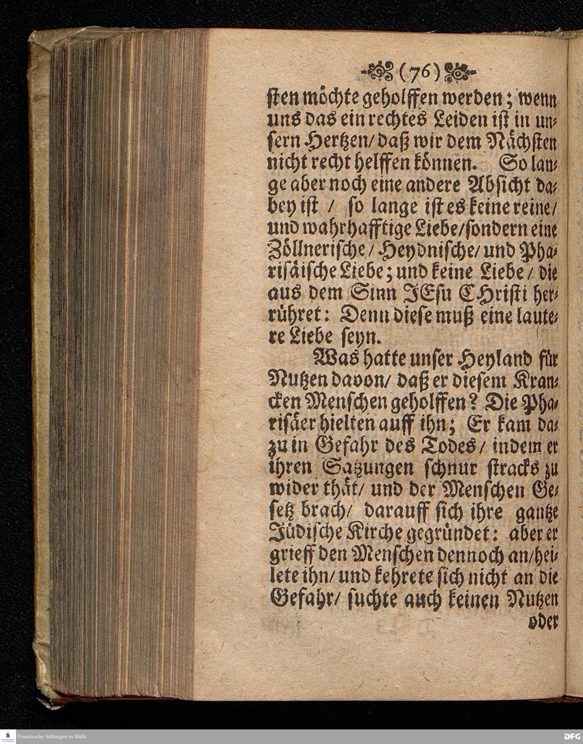 Der Sinn Christi Am XVII.Sonntag nach Trinit. ANNO 1698. In einer Predigt Uber das Evangelium Luc.XIV, vers.1==11. In der St.Georgen=Kirche zu Glaucha an Halle vorgestellet / von M.August Hermann Francken / SS.Theol.Gr.& OO.LL.P.P.Ord.& P.Glauch. HALLE / Gedruckt bey Christian Henckeln / Univers.Buchdr. 1699.