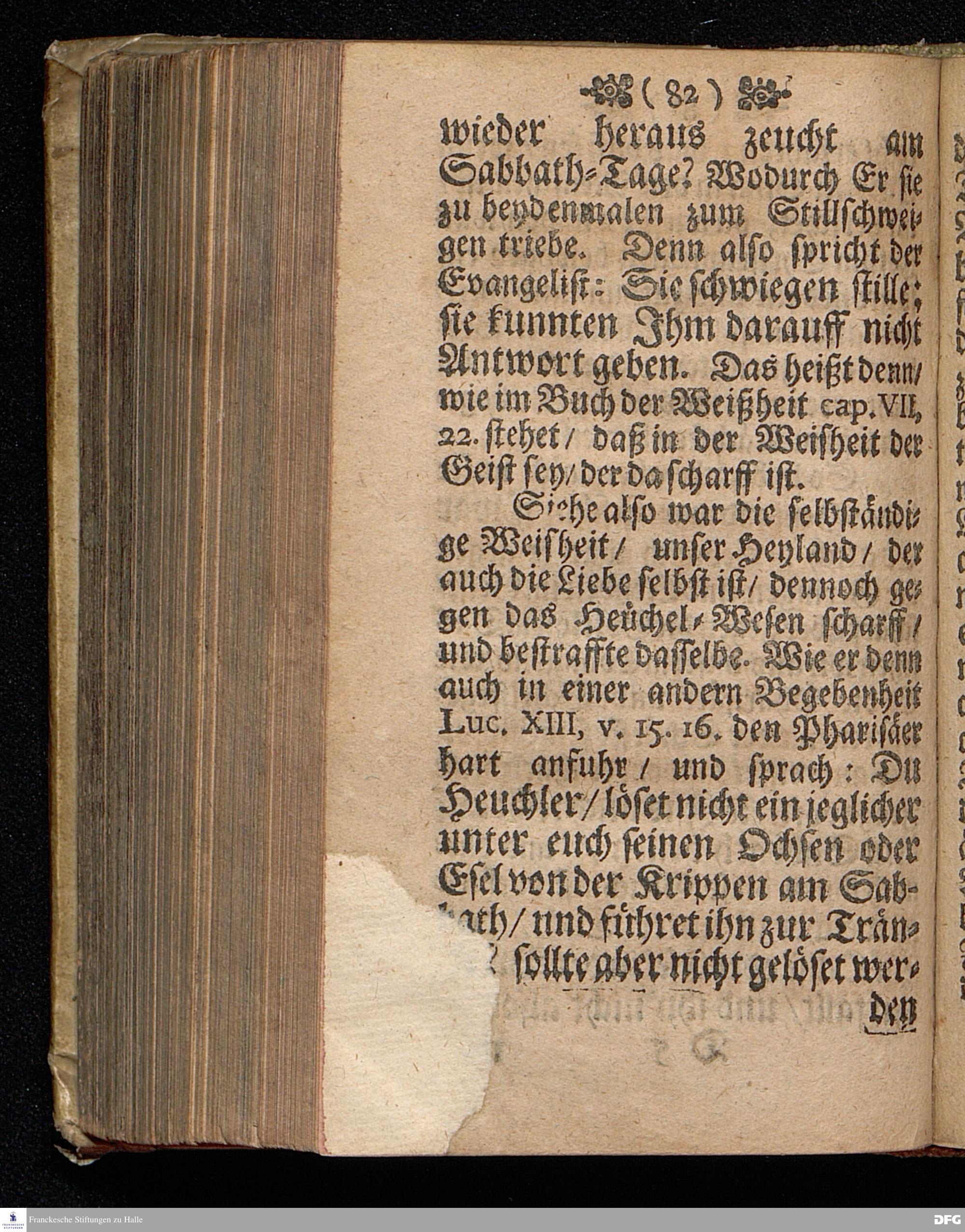 Der Sinn Christi Am XVII.Sonntag nach Trinit. ANNO 1698. In einer Predigt Uber das Evangelium Luc.XIV, vers.1==11. In der St.Georgen=Kirche zu Glaucha an Halle vorgestellet / von M.August Hermann Francken / SS.Theol.Gr.& OO.LL.P.P.Ord.& P.Glauch. HALLE / Gedruckt bey Christian Henckeln / Univers.Buchdr. 1699.
