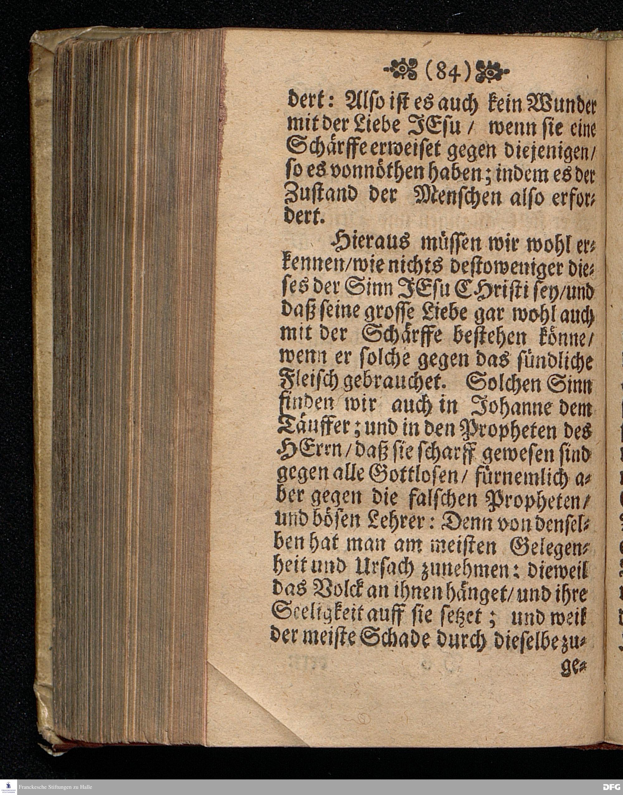 Der Sinn Christi Am XVII.Sonntag nach Trinit. ANNO 1698. In einer Predigt Uber das Evangelium Luc.XIV, vers.1==11. In der St.Georgen=Kirche zu Glaucha an Halle vorgestellet / von M.August Hermann Francken / SS.Theol.Gr.& OO.LL.P.P.Ord.& P.Glauch. HALLE / Gedruckt bey Christian Henckeln / Univers.Buchdr. 1699.