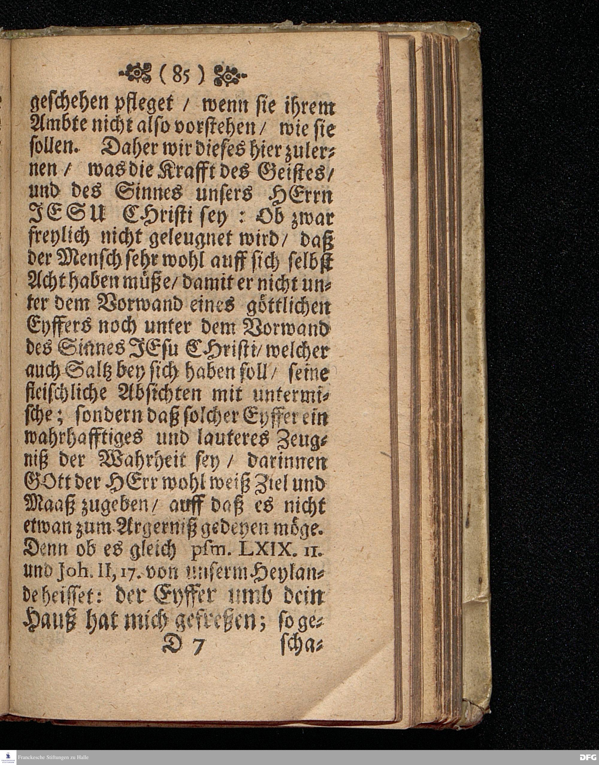Der Sinn Christi Am XVII.Sonntag nach Trinit. ANNO 1698. In einer Predigt Uber das Evangelium Luc.XIV, vers.1==11. In der St.Georgen=Kirche zu Glaucha an Halle vorgestellet / von M.August Hermann Francken / SS.Theol.Gr.& OO.LL.P.P.Ord.& P.Glauch. HALLE / Gedruckt bey Christian Henckeln / Univers.Buchdr. 1699.