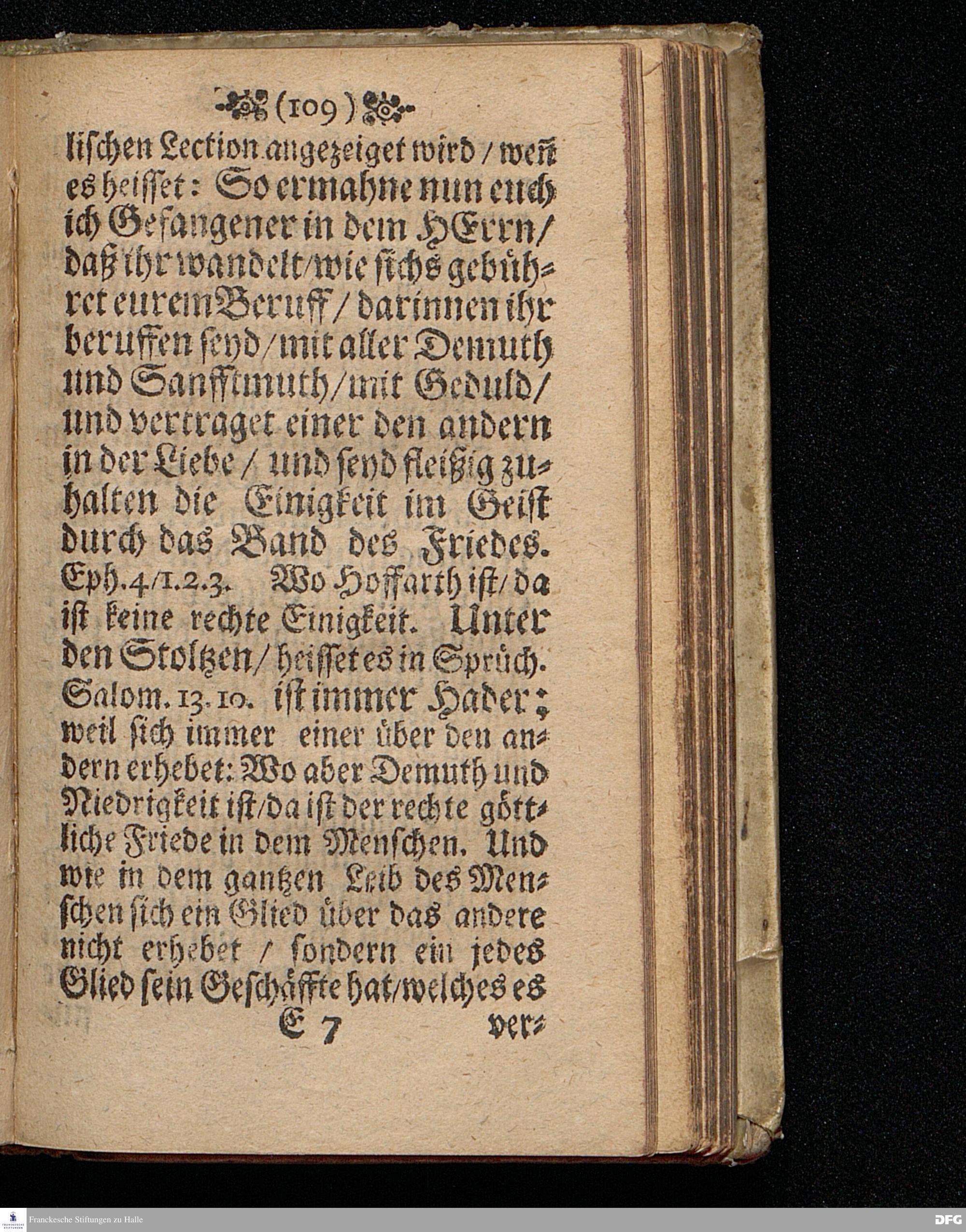 Der Sinn Christi Am XVII.Sonntag nach Trinit. ANNO 1698. In einer Predigt Uber das Evangelium Luc.XIV, vers.1==11. In der St.Georgen=Kirche zu Glaucha an Halle vorgestellet / von M.August Hermann Francken / SS.Theol.Gr.& OO.LL.P.P.Ord.& P.Glauch. HALLE / Gedruckt bey Christian Henckeln / Univers.Buchdr. 1699.