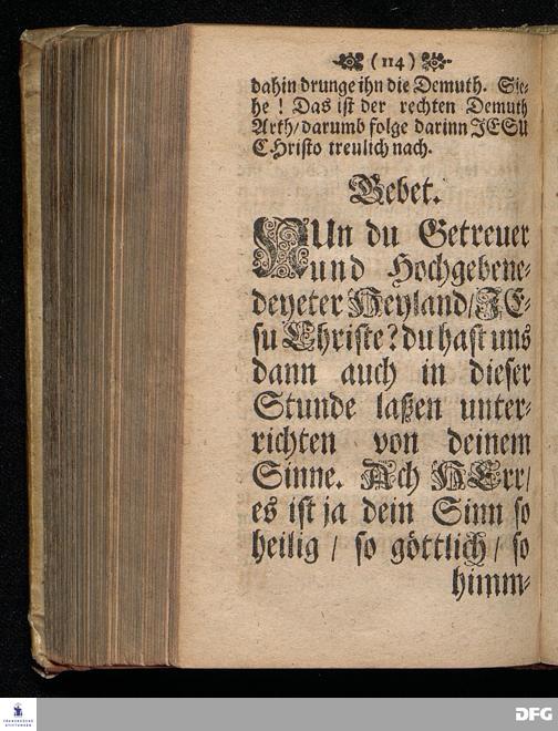 Der Sinn Christi Am XVII.Sonntag nach Trinit. ANNO 1698. In einer Predigt Uber das Evangelium Luc.XIV, vers.1==11. In der St.Georgen=Kirche zu Glaucha an Halle vorgestellet / von M.August Hermann Francken / SS.Theol.Gr.& OO.LL.P.P.Ord.& P.Glauch. HALLE / Gedruckt bey Christian Henckeln / Univers.Buchdr. 1699.